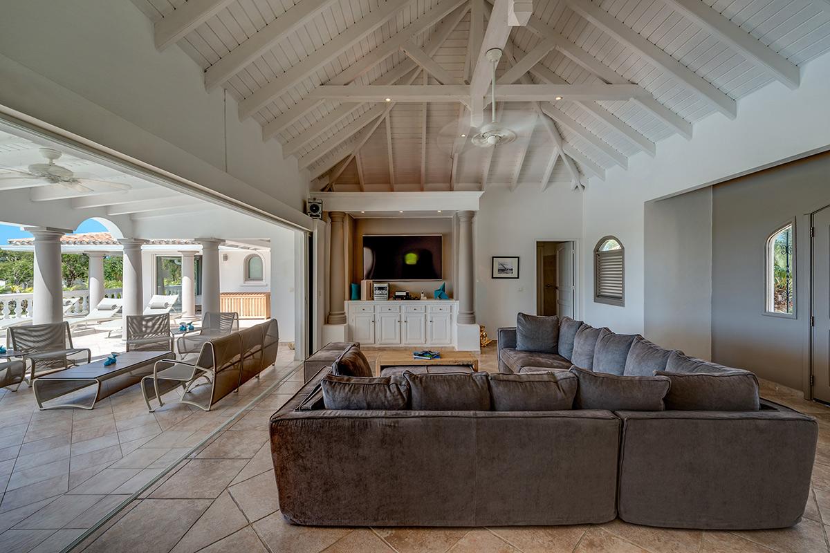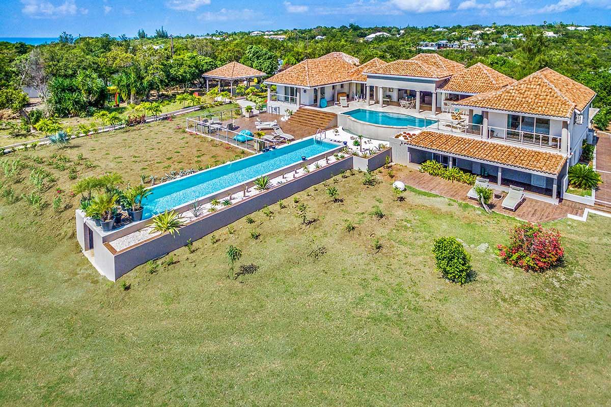 La Bastide combines a contemporary attitude with the exoticness of Moroccan design, perfectly suited to Caribbean lifestyle. Through the gates, you arrive in a private tropical paradise. Lush gardens and beautiful columned entry welcome you into a stylish villa with a breathtaking view. As your eye wanders through the cool interiors to the covered terrace, your eye draws you to the azure Caribbean Sea and brilliant blue sky. Between the interior and sea is a fabulous, very unique double pool that combines a large horizontal infinity pool set with a beautiful oversized vertical lap pool that almost disappears into the sea. Surrounding this oasis is a glorious garden filled with palms, tropical shrubs and flowers.