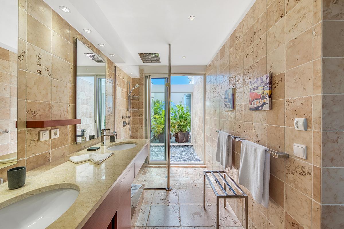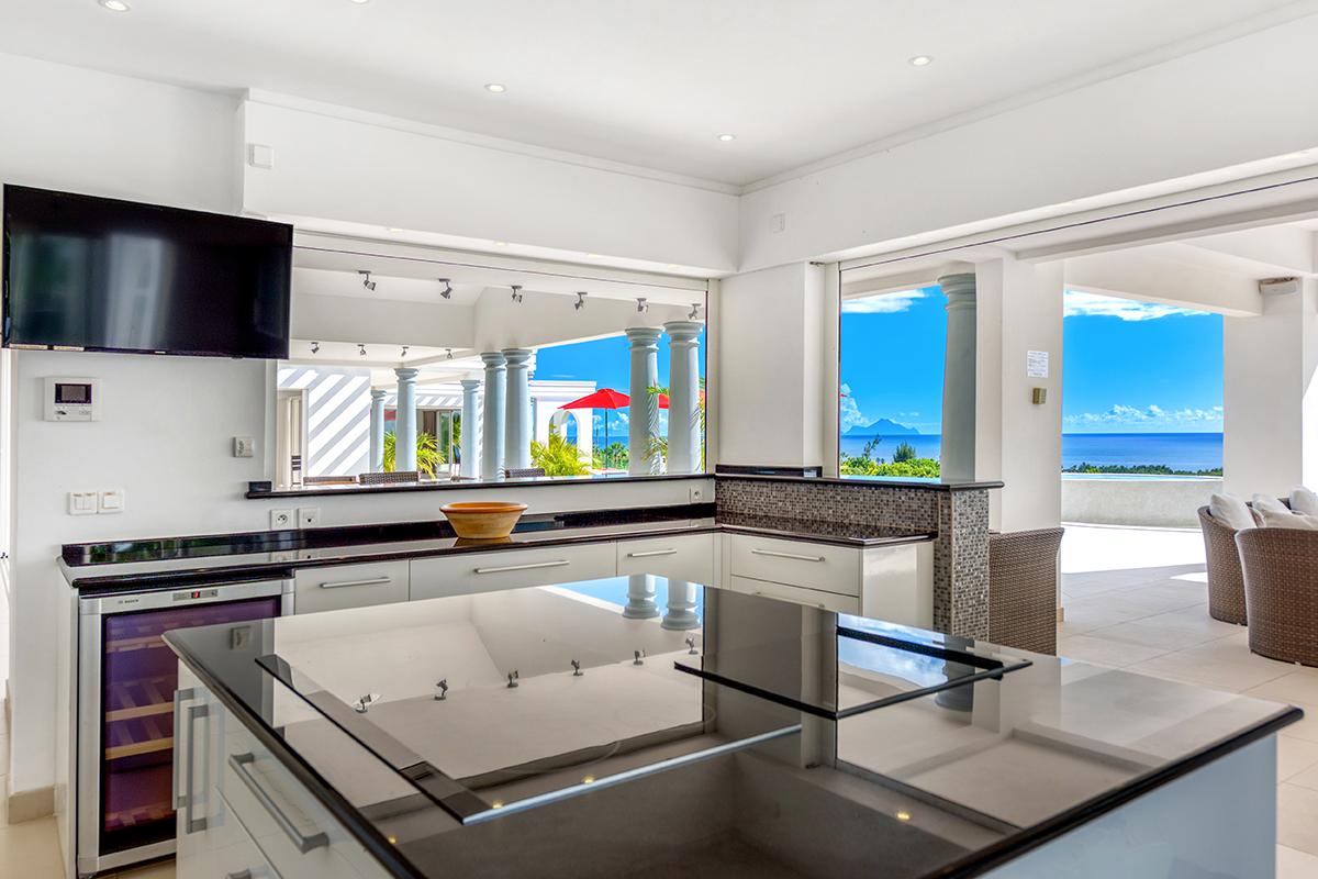 The interior of La Pergola consists of 4 air-conditioned spacious King sized suites, beautifully decorated, air-conditioned living room, a formal dining room and a huge kitchen. The kitchen is very well equipped with gourmet appliances and is perfectly prepared to handle a larger group for dining in house, or - even better - al fresco on the terrace or at the beautiful Gazebo with the great view of the Caribbean.