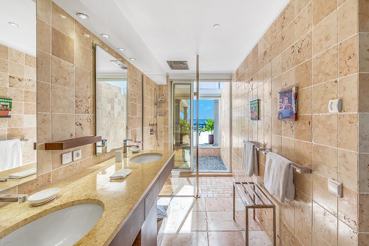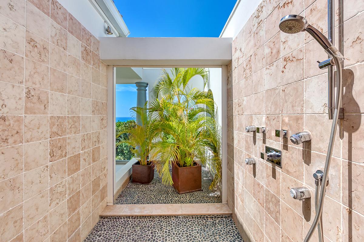 - Bedroom 4: King bed, en suite bathroom with shower, al fresco shower, TV, AC, ceiling fan