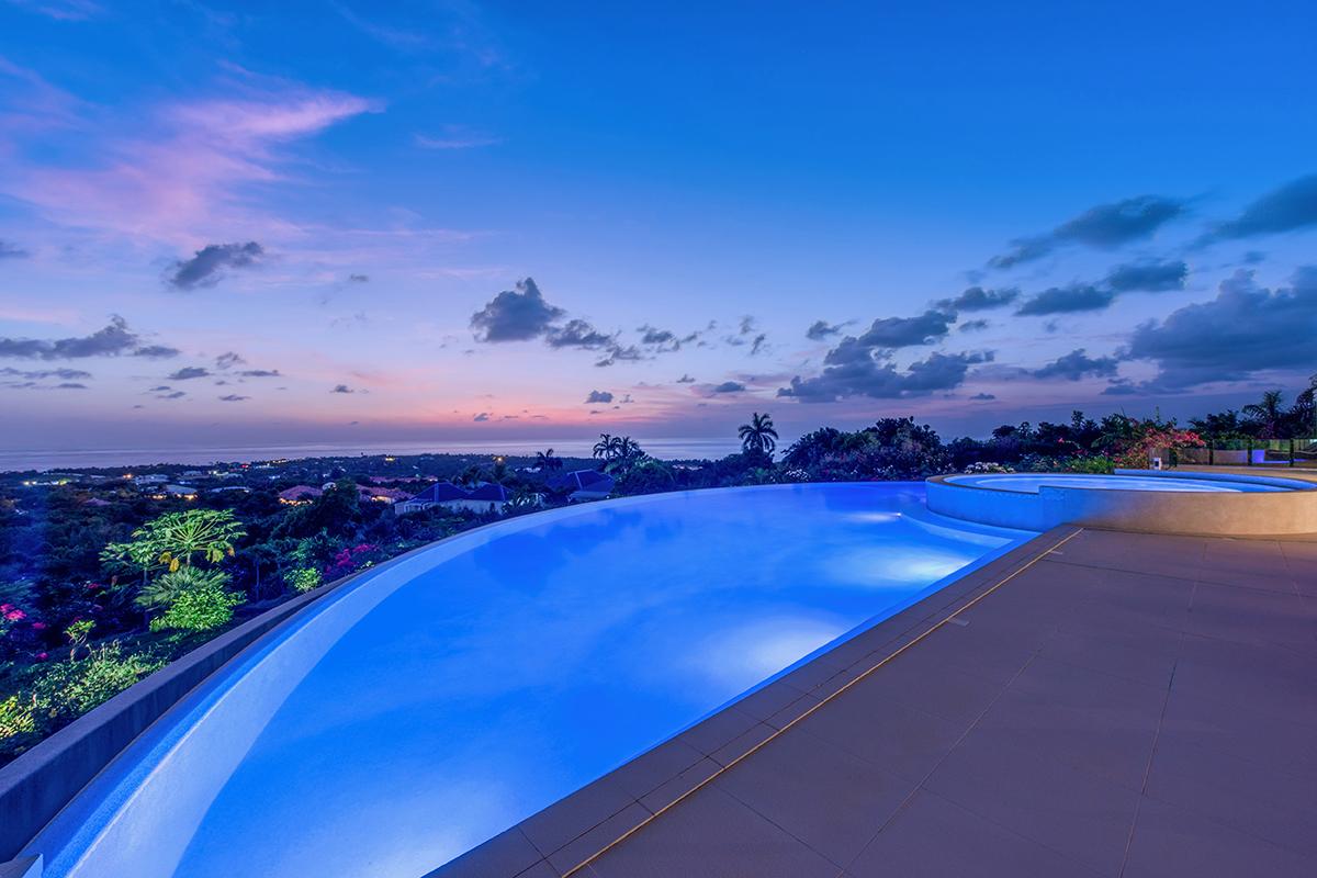 This well designed, huge four bedrooms property is set within well-manicured gardens and features an extensive outdoor area comprising a terrace with shaded seating, a sun deck and large BBQ Gazebo and an infinity-edge private heated pool that cascades down to a Spa-style pool end.