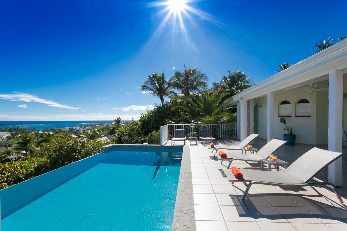 You will love this luxuriously appointed haven of peace for its magnificent 180º view over Orient Bay, certainly one of the most beautiful beaches on the island. From the overflowing swimming pool of this beautiful villa you can admire both its tropical garden and the bay.