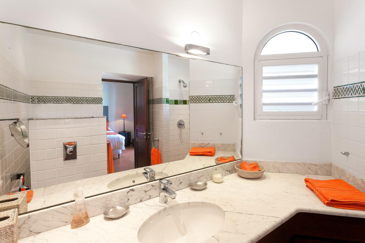 The furnishings are definitely modern with paintings, sculptures and artifacts reflecting faraway travels. In the three bedrooms, “Ali Baba”, “Massai” and “Grenade”, with designer furnishings and en-suite bathrooms, you will find the cultural spirit which is central to the house. Two bedrooms are furnished with king-size beds, the third with twin beds which can be combined into a king-size. Each room, equipped with a flat screen TV and a DVD player, is air-conditioned and opens on to a terrace with a view over the sea.
