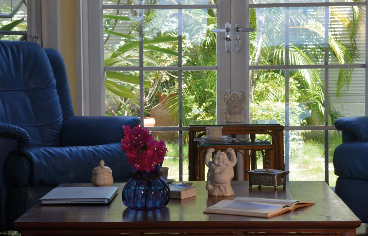 The marble floored house features a tasteful blend of antique and modern furniture. The spacious living room has a baby grand Steinway piano and opens up to the terrace through a 24 ft. roll away glass sliding door. The bedrooms have original antique four poster beds, all of which are king size.