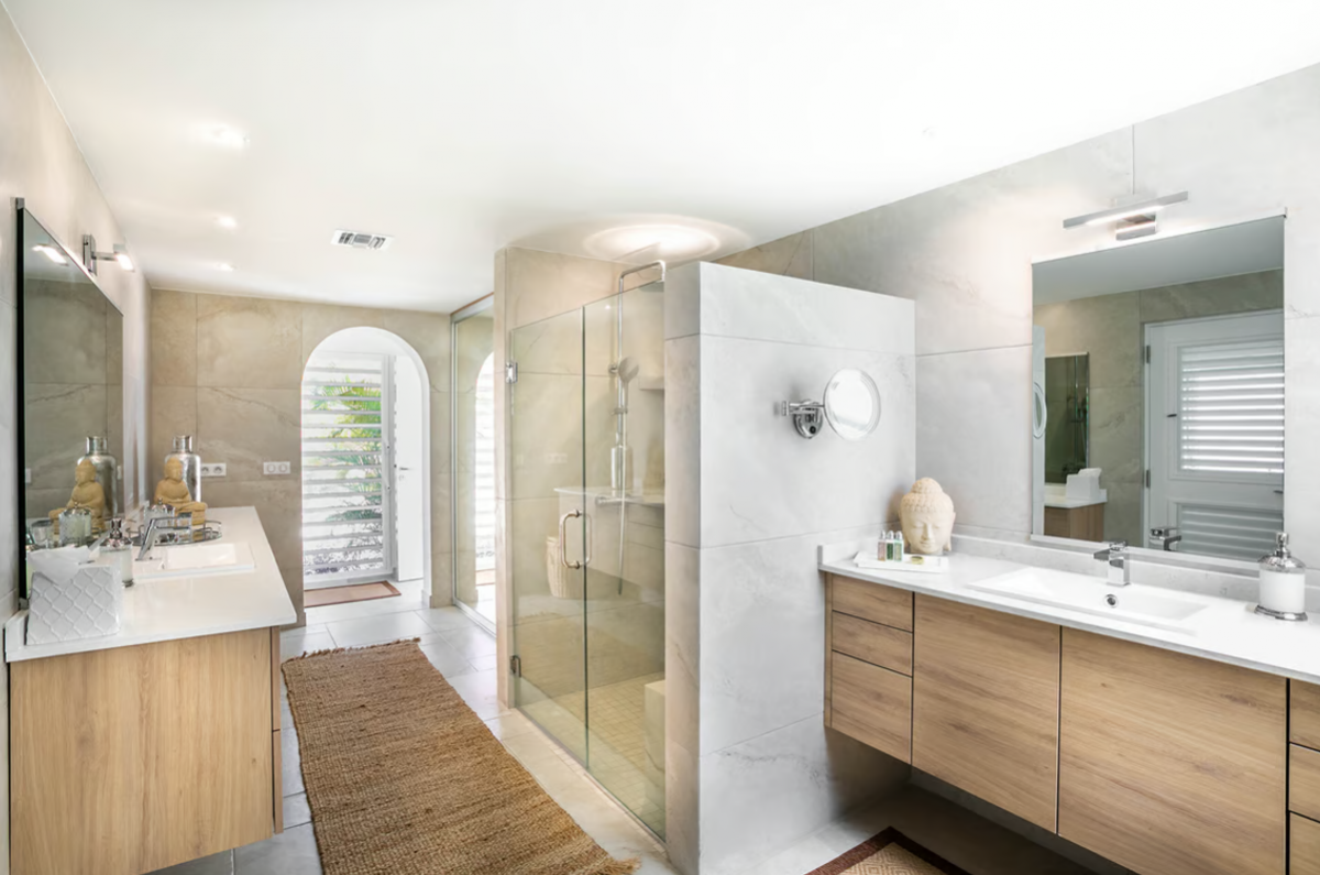 - Bedroom 2: Split king (two twins set as king),ensuite bathroom AC, TV, safe, seperate from main house