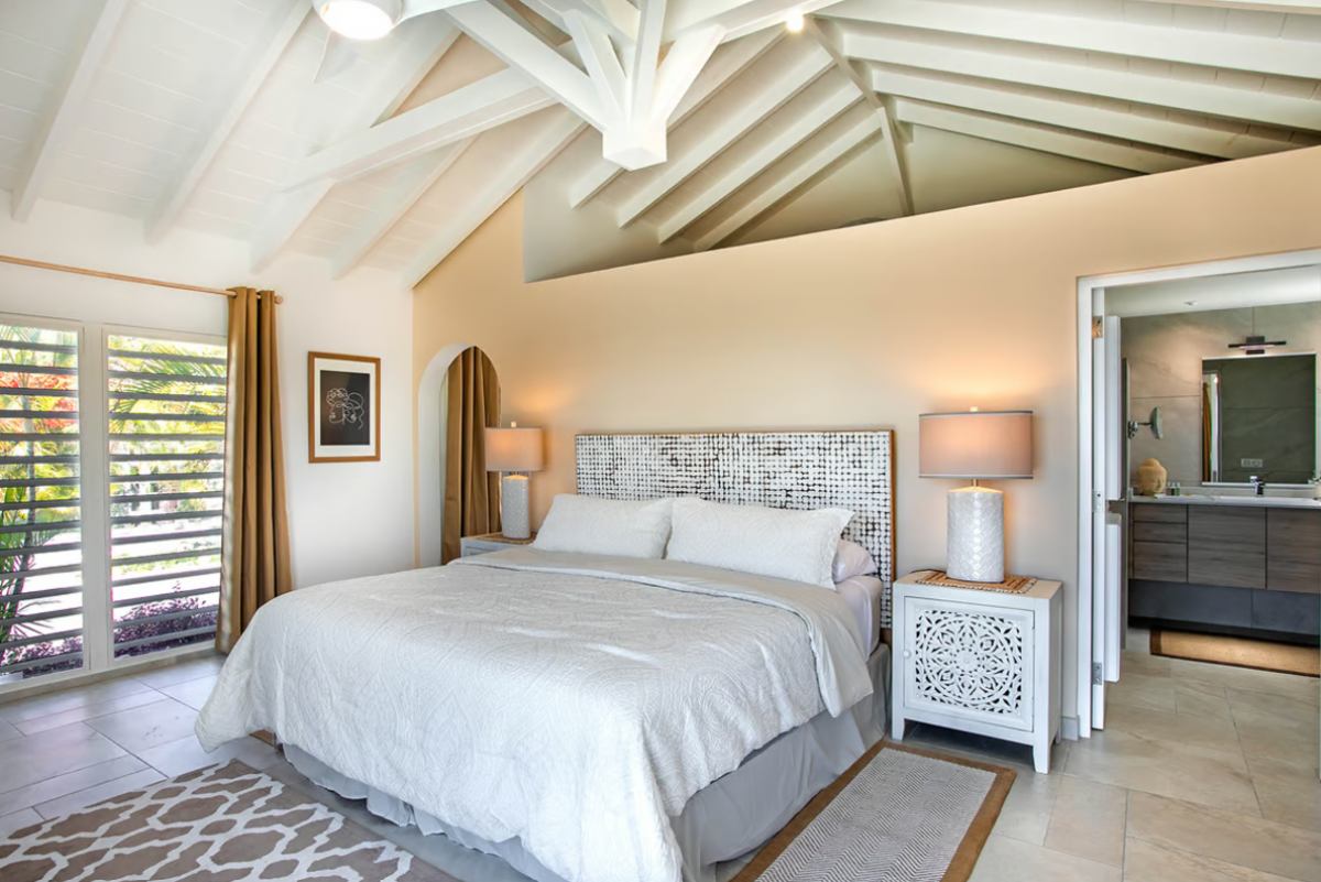This classic Caribbean villa, designed by award winning architect Robertson Ward, has a spectacular view of Baie Rouge. Set on a gentle hillside with a private path to the beach it offers the best of both worlds– fantastic views, privacy and the beach a stone’s throw away.