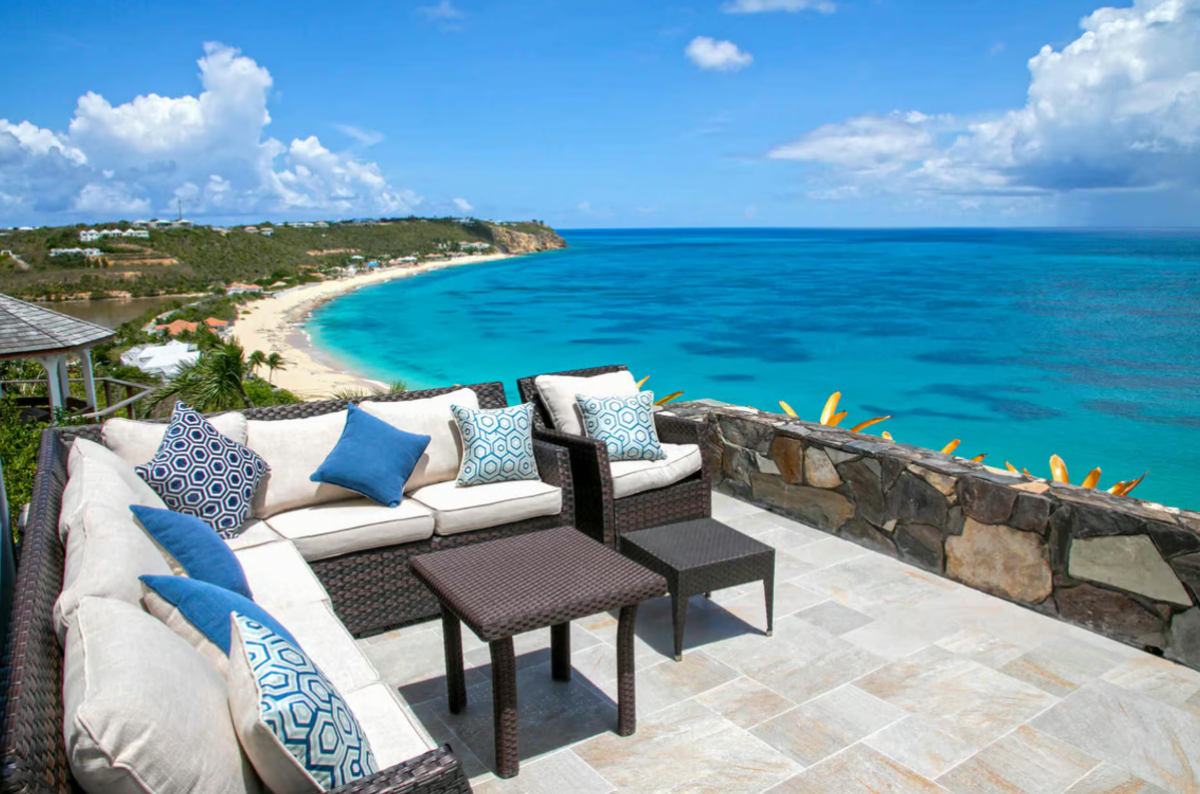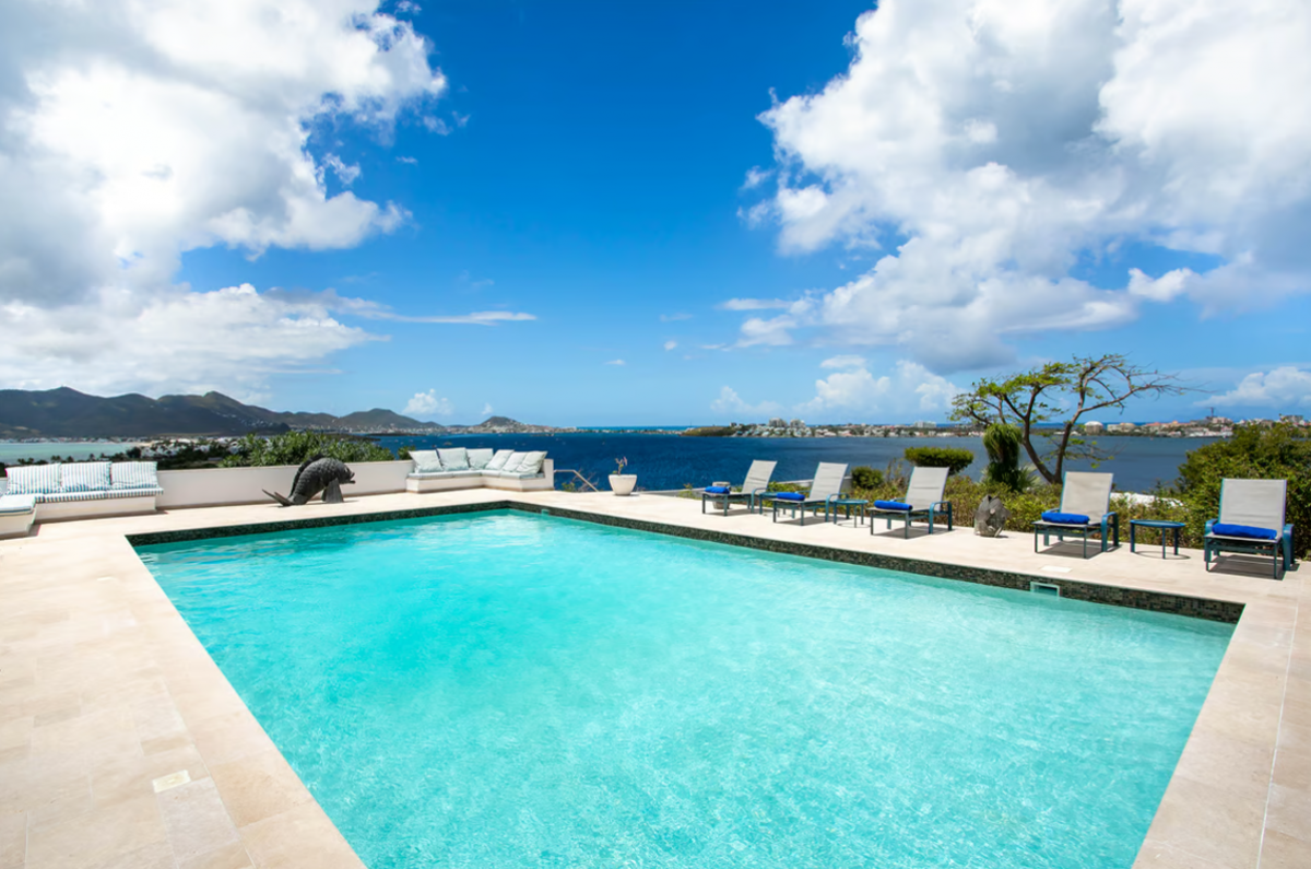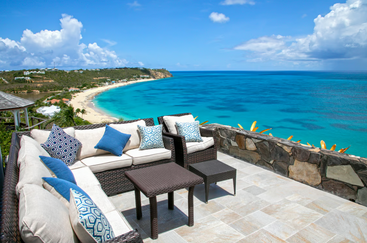 The villa features 5 bedrooms with en-suite bathrooms, spacious living areas, a gazebo perfect for meals, a professional kitchen and many welcoming terraces with commanding views of Anguilla, Baie Rouge and on the other side the Simpson Bay Lagoon.
