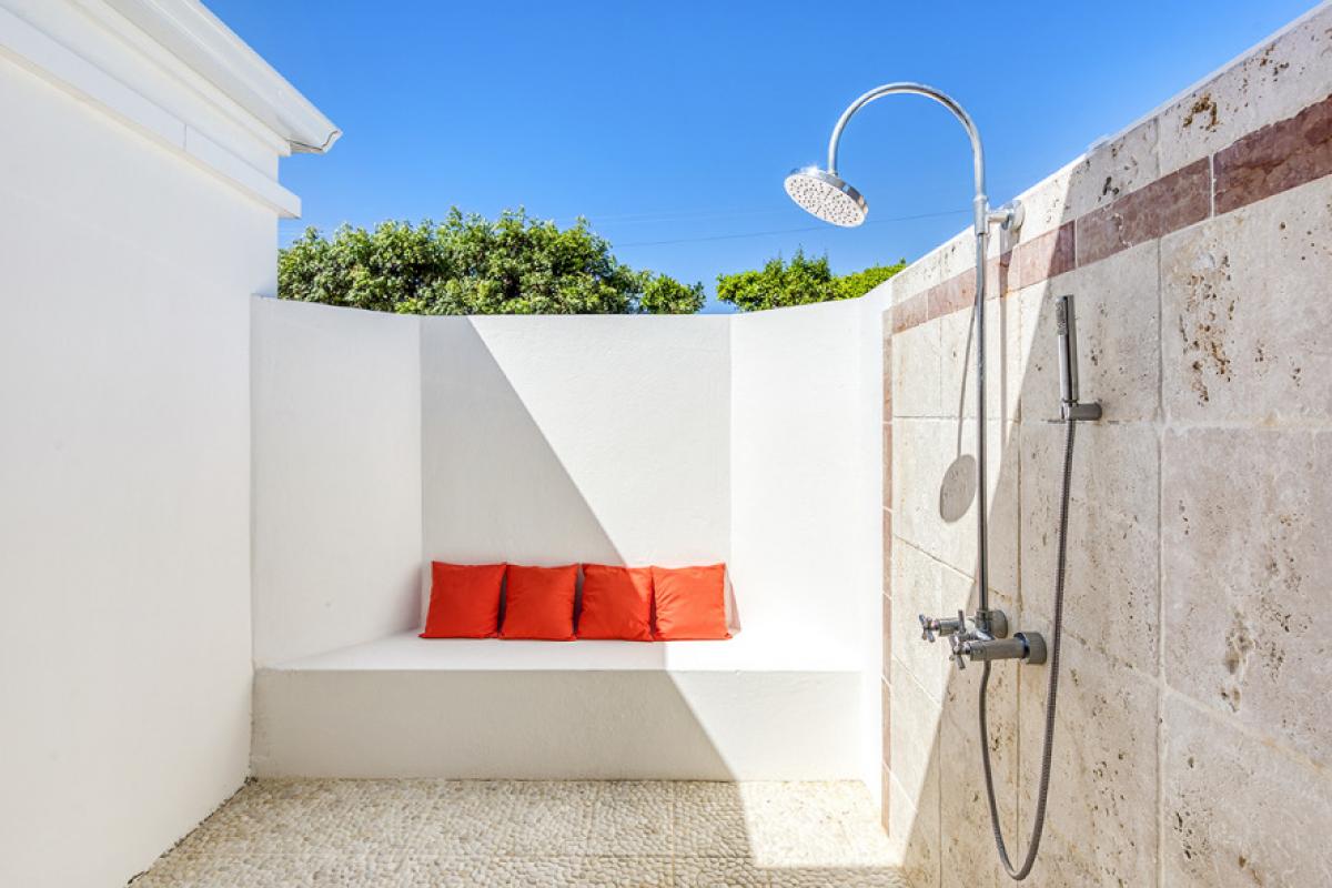 Two large bedrooms feel very private; one connected directly to the interior and one set off the terrace. Both have fabulous sea views and spa style travertine and teak bathrooms; one with private outdoor shower and one that opens to the sea view.