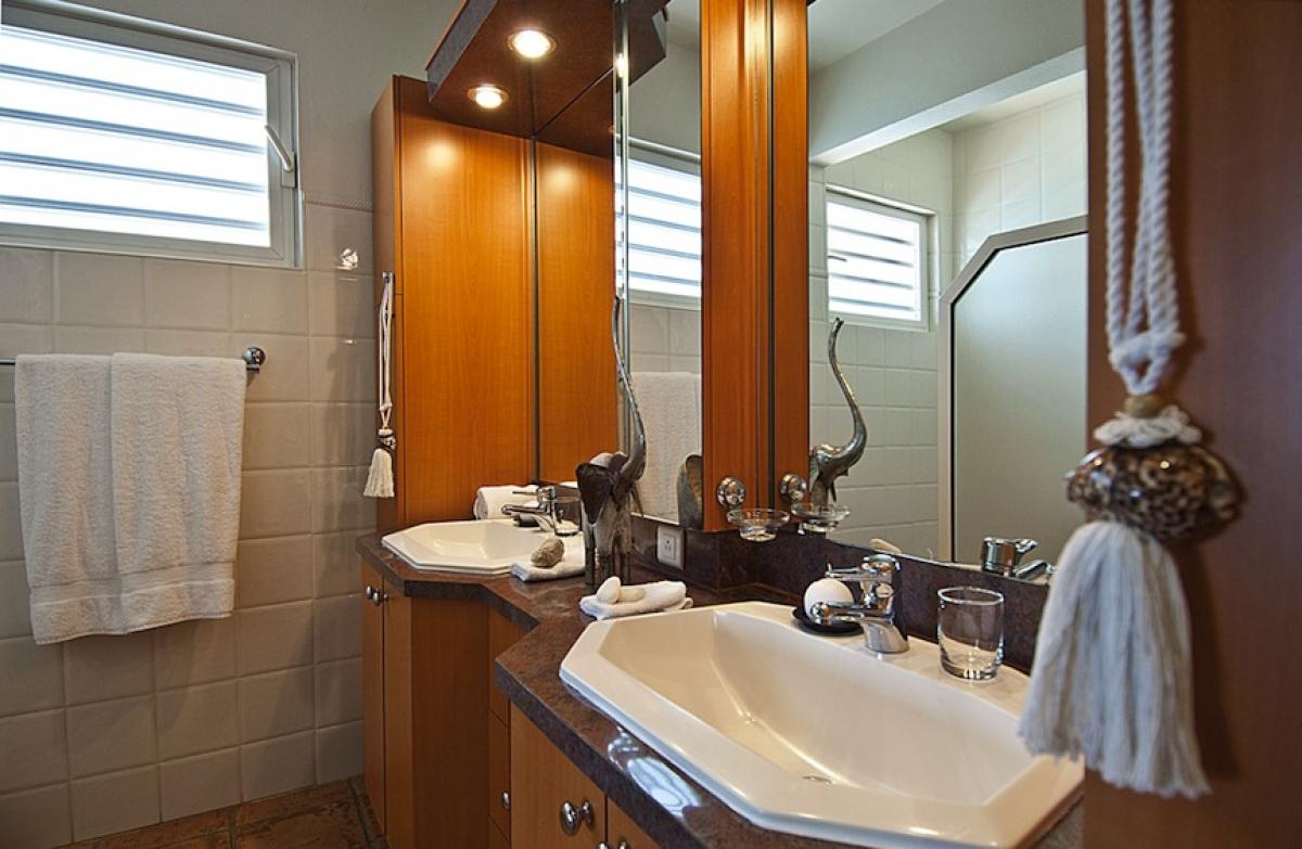 Modani is a lovely three bedroom hillside villa located in Terres Basses and is within walking distance of beautiful Bay Rouge Beach. Modani has a large well equipped kitchen that opens on to a breakfast bar overlooking the pool area. All three bedrooms have ocean views and all have adjoining baths. The ample living and dining areas are surounded by sliding glass doors that open on to a 200 foot long covered gallery, giving superb panoramic ocean views. Just a few steps down from the gallery is a large private pool and deck area, perfect for sunbathing.