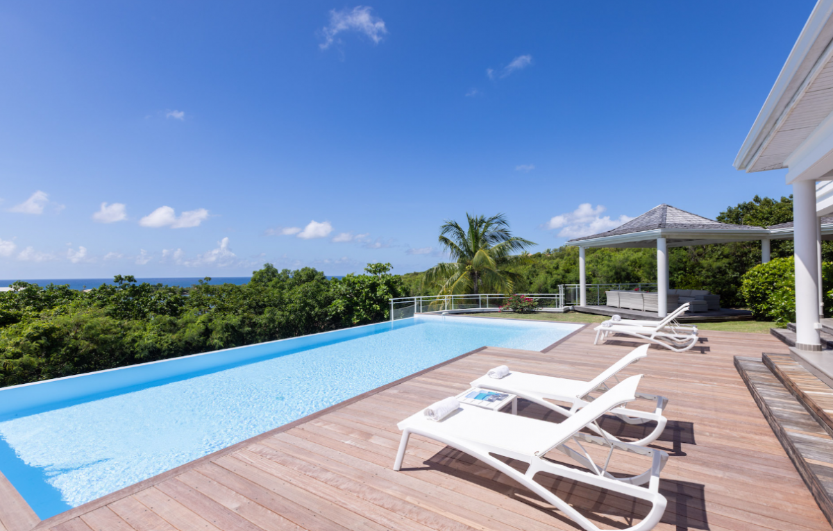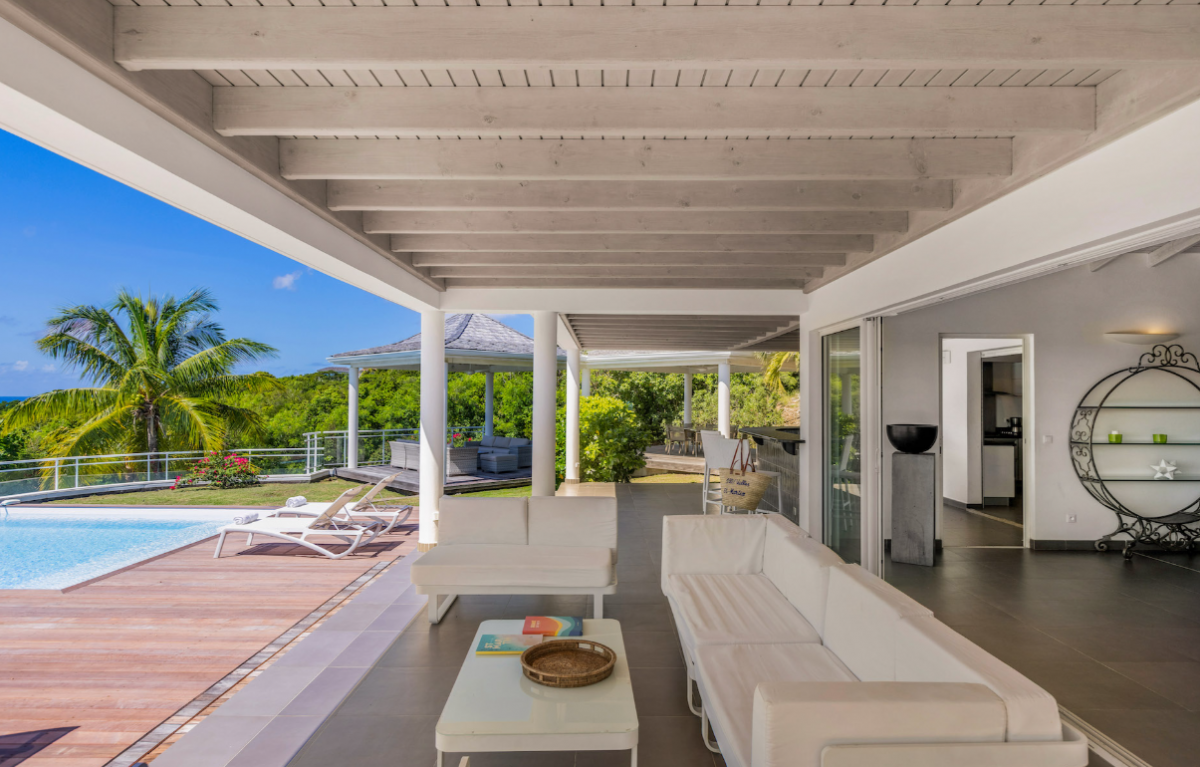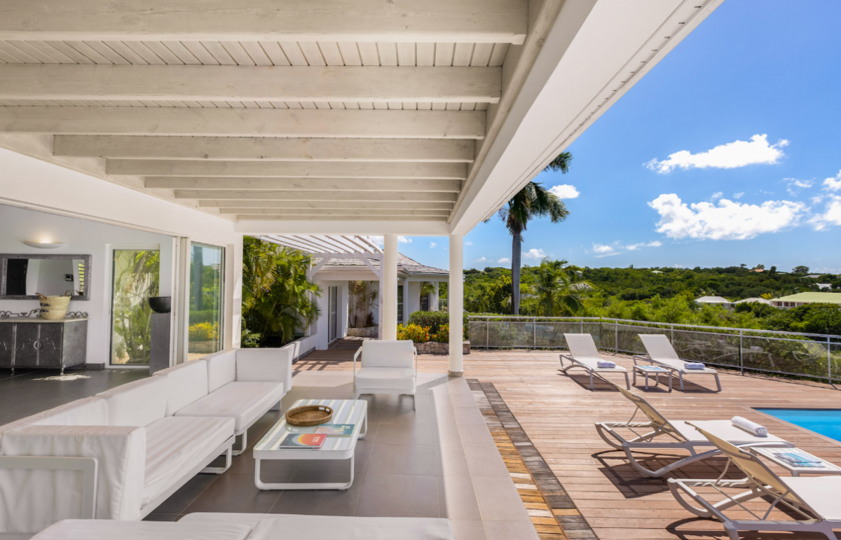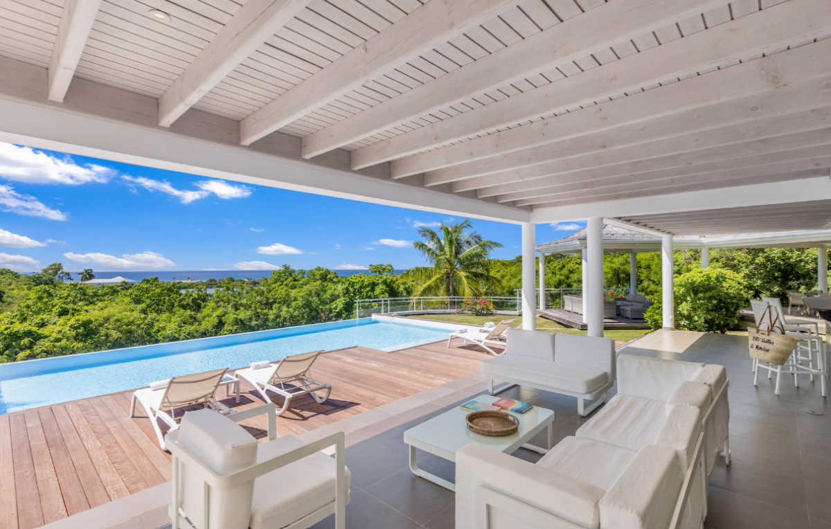 No Limit is an impressive contemporary villa nestled into the hillside in Terres Basses with stunning sunset ocean views towards Baie Longue and the island of Saba.