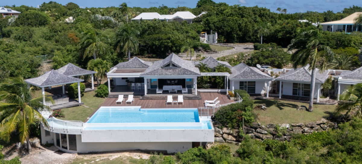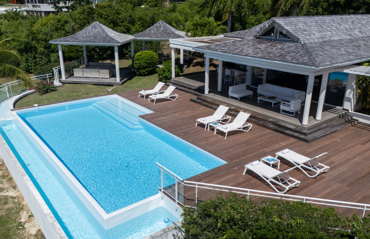 With the latest in luxurious design features, the villa has 3 equal sized, king-size bedrooms with en-suite bathrooms, a large open-plan living area, a fabulous gourmet kitchen and an extensive terrace with gazebo & a large infinity pool. All of this within a 5-minute drive of Plum Bay Beach.