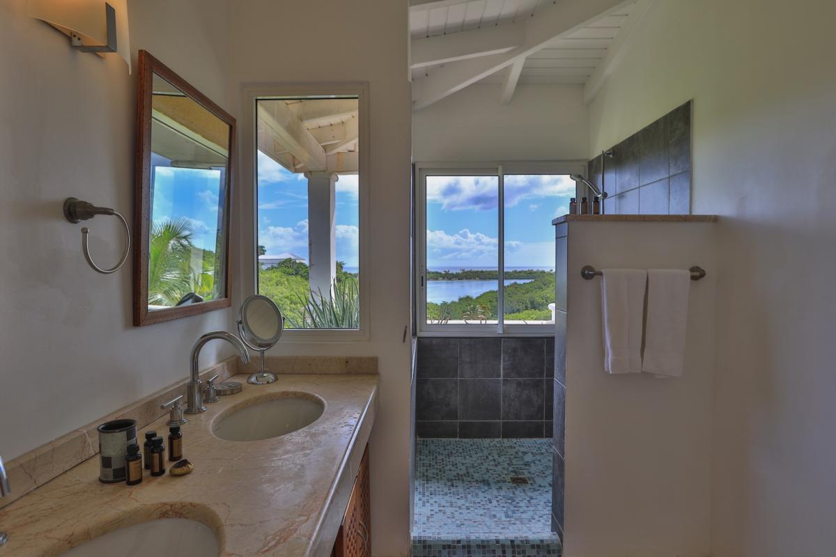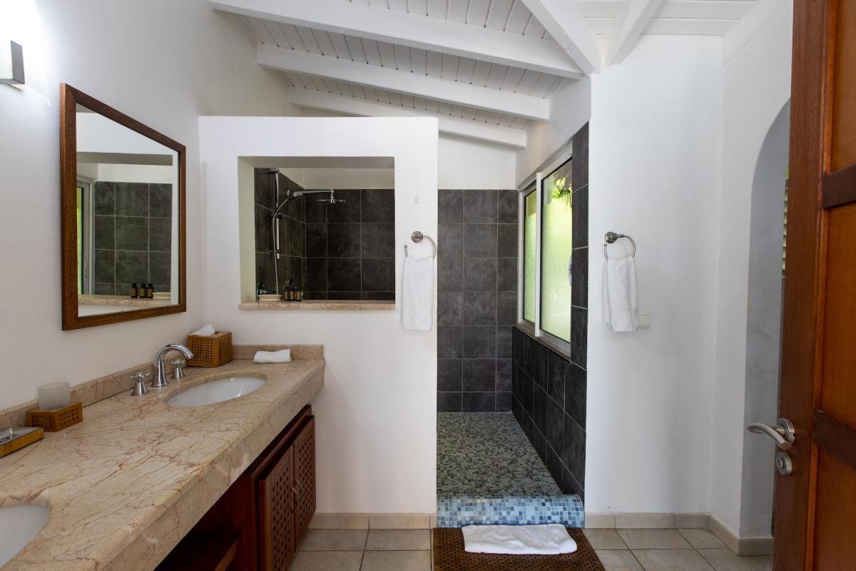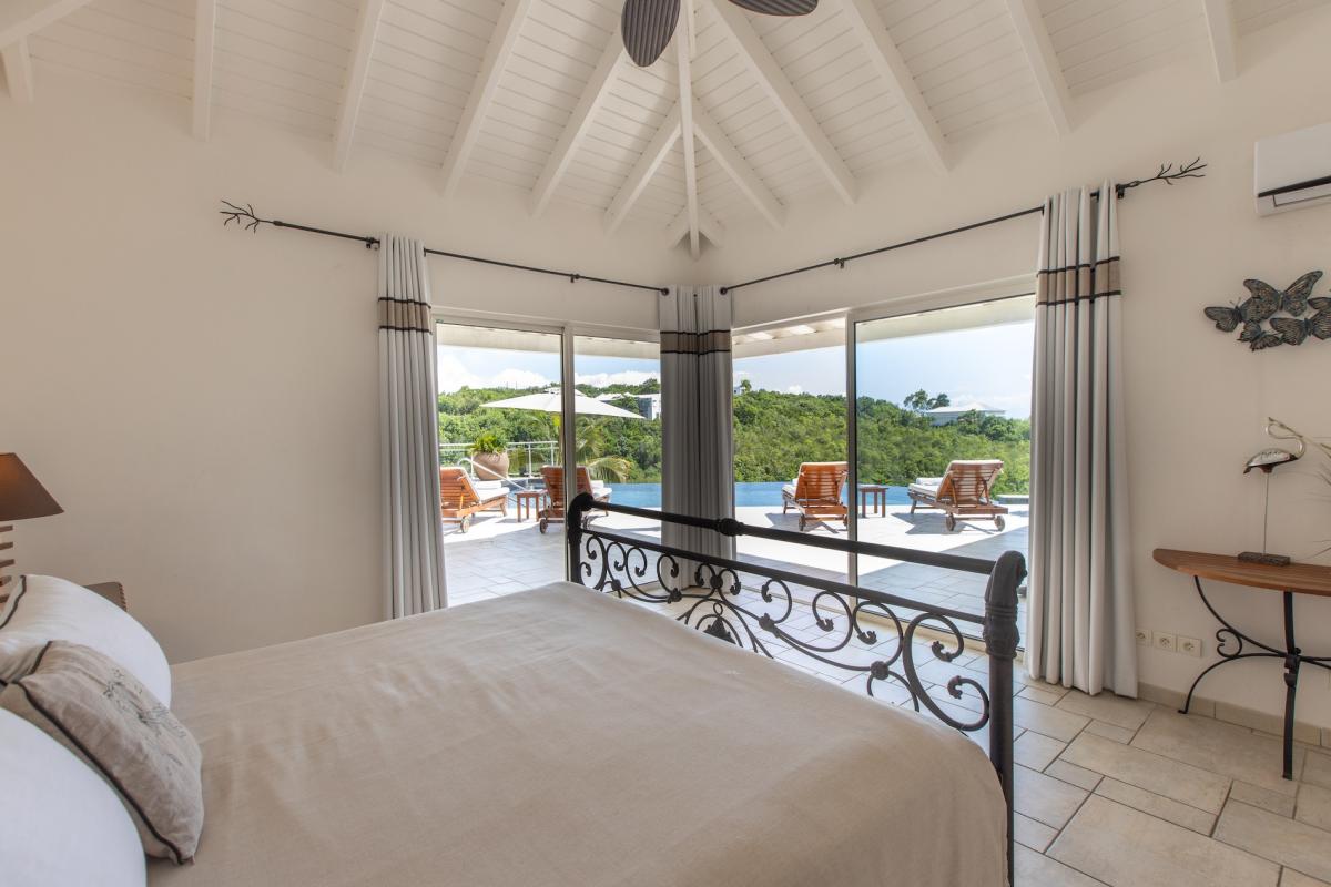 The deliciously comfortable living room and large adjoining gourmet kitchen open onto the spacious covered terrace and dining area so guests can enjoy the beautiful ocean views. All 4 bedrooms at Sea Vous Play have en-suite bathrooms and air-conditioning and open out onto the pool terrace. The bedrooms are equal in size and standard and have king-size beds with the exception of one that has 2 single beds. Further details that add to the quality this vacation rental in St. Martin include the living room with 40” flat screen TV/DVD with US satellite channels, outdoor CD player system, cathedral ceilings, wifi Internet connection, and a south facing pool.