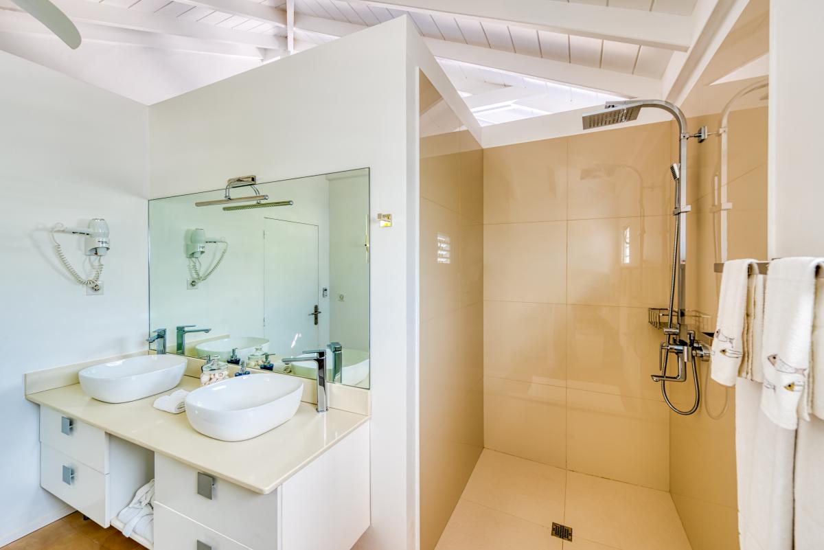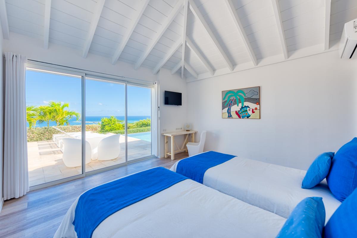 Bedroom 3:  This bedroom has two twin-sized beds, TV, air conditioning, a safe, and an ensuite bathroom. The room is equipped with an ocean view.