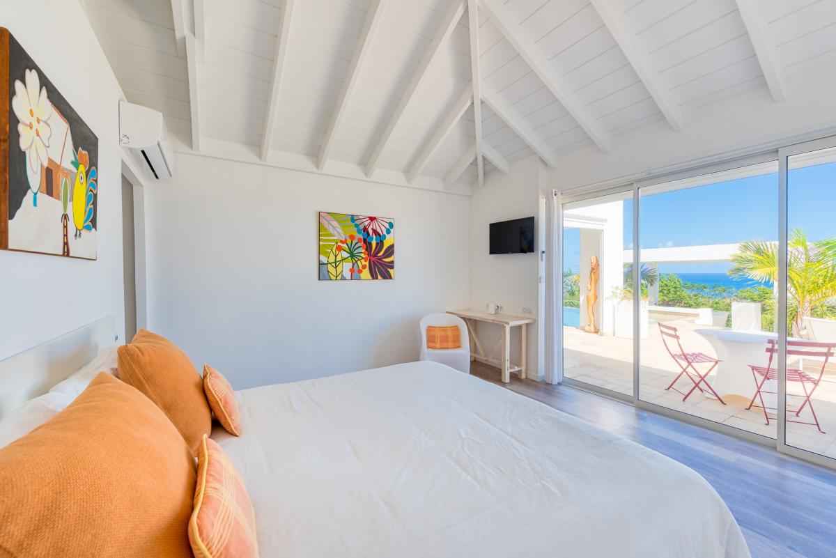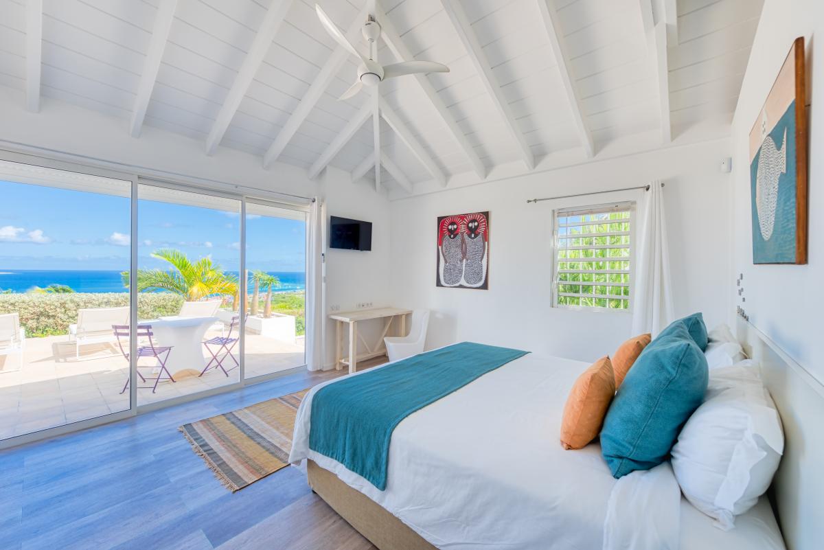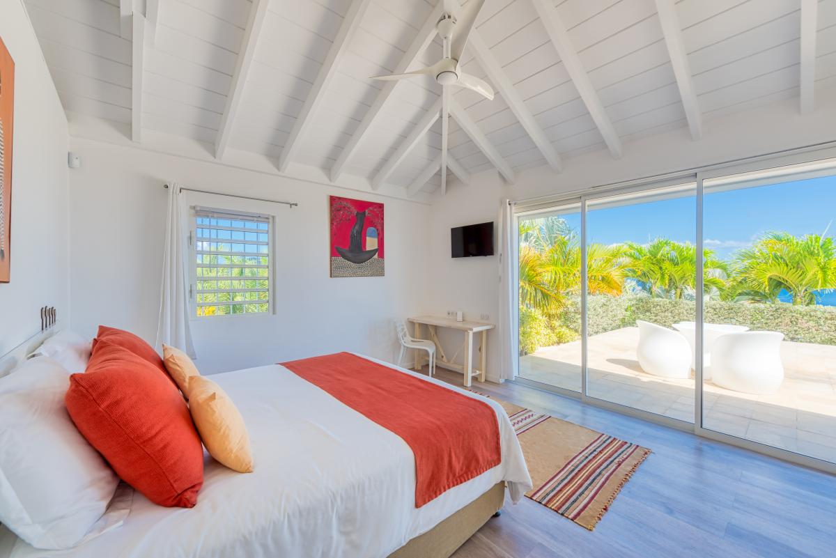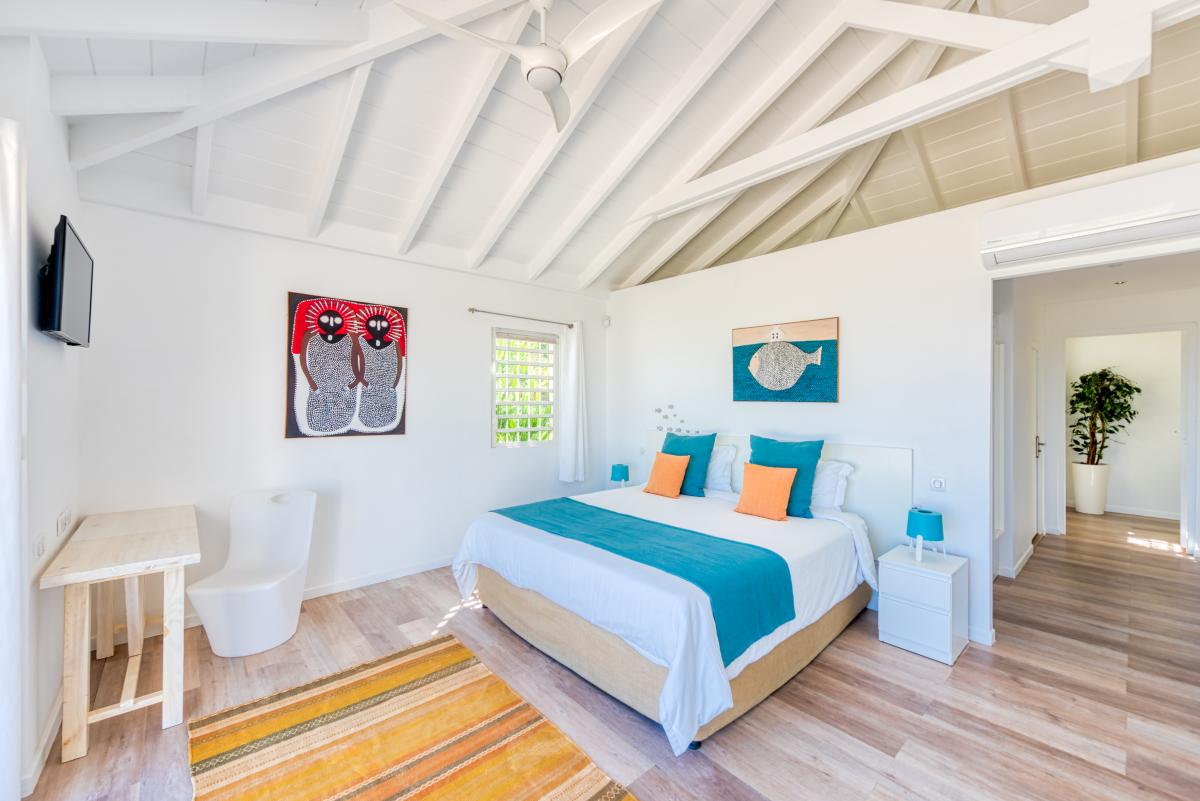 Bedroom 4:  This bedroom has a king-sized bed, TV, air conditioning, a safe, and an ensuite bathroom. The room is equipped with an ocean view.