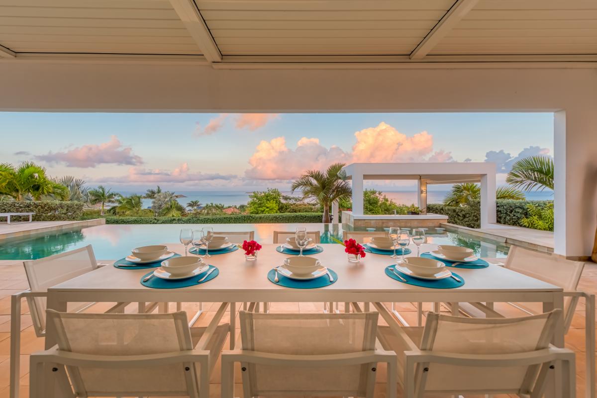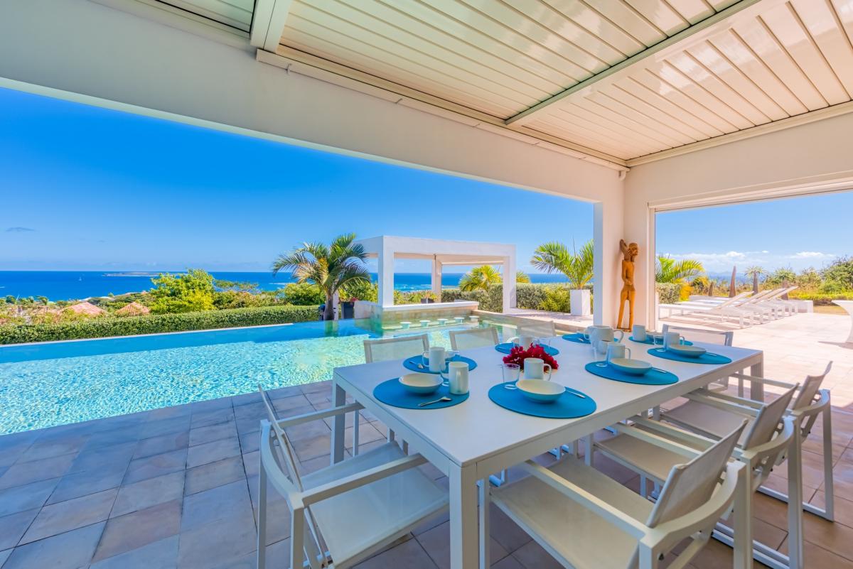 Villa Albacore is a modern home located in the heights of Orient Bay in St. Martin. This gorgeous St. Martin villa has four bedrooms all with their own ensuite bathroom. The villa is equipped with a gourmet kitchen, a living room stocked with various board games, an infinity pool, and wonderful views of both the sea and the surrounding islands.