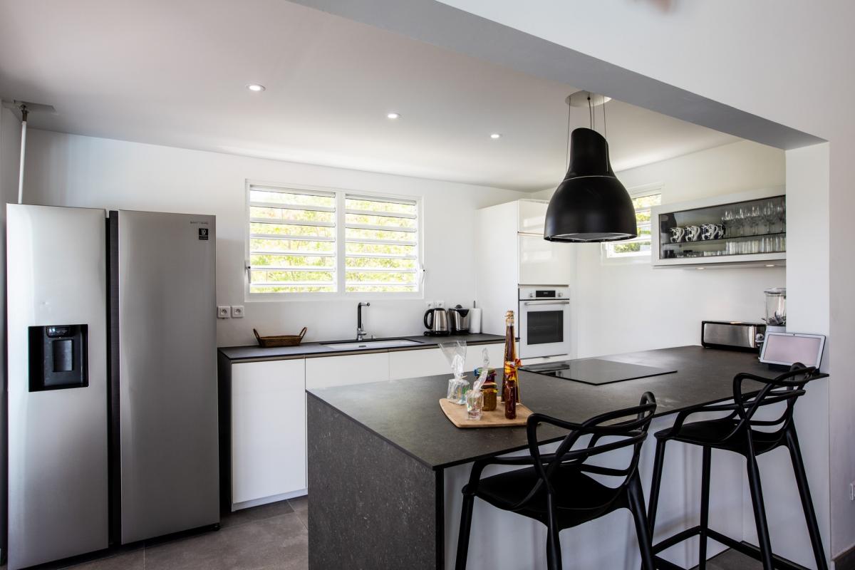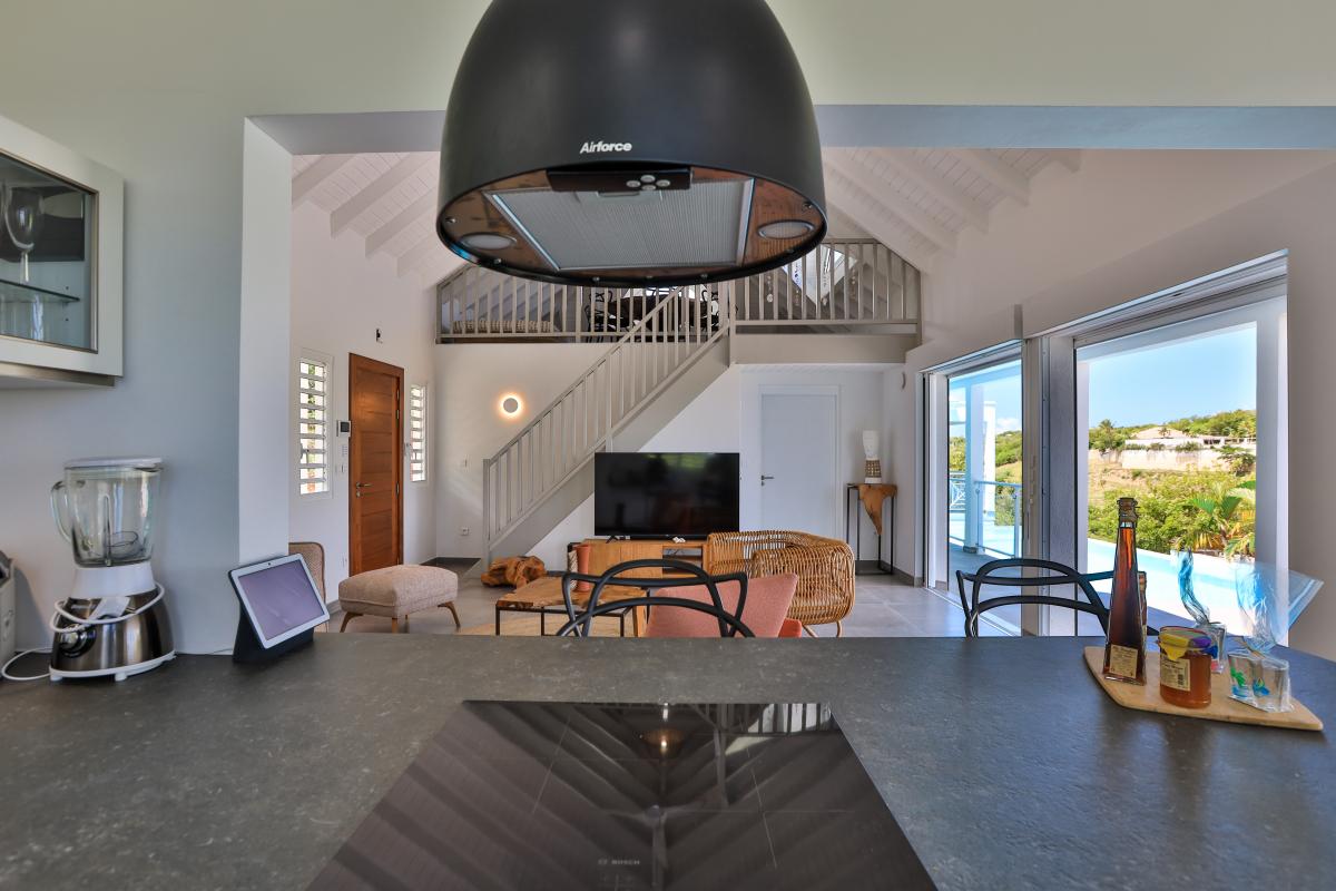 Villa Angelsmart is a four-bedroom villa located in St. Martin in Mont Rouge. This St. Martin villa rental offers a panoramic view, a well equipped kitchen, two dining rooms, and a gym. A nice outdoor seating area has also been set up, allowing you to relax while admiring the view of Red Bay beach. Villa Smart has been completely renovated in a contemporary and luxurious style.
