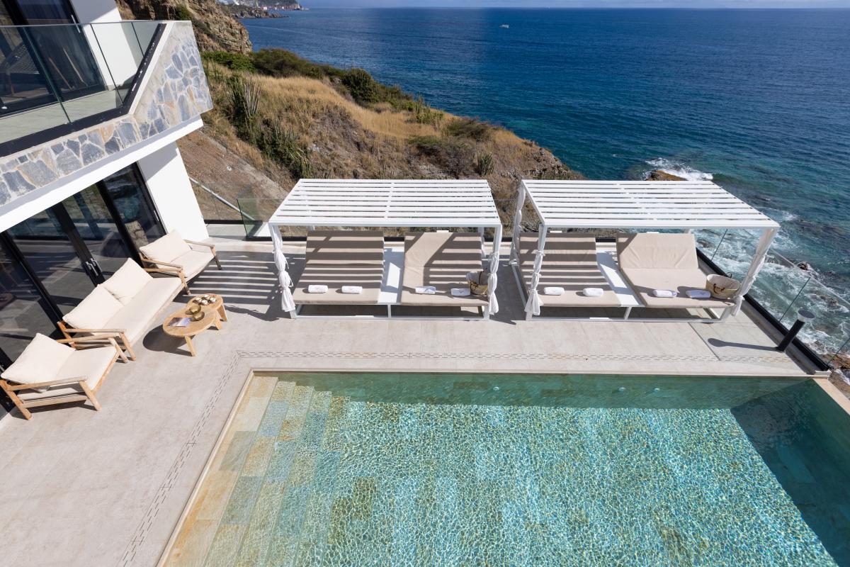 Villa Aqua Vista is a 6-bedroom, multi-level St. Martin villa rental near Indigo Bay. This villa offers sleek lines and sophicated architecture with minimalist design and modernity. With expansive windows and an open-concept, panoramic views of the Caribbean Sea highlight the beauty of this location. The six bedrooms are designed to deliver comfort and tranquility using neutral hues and top-tier furnishings, complementing the villa's contemporary aesthetic.