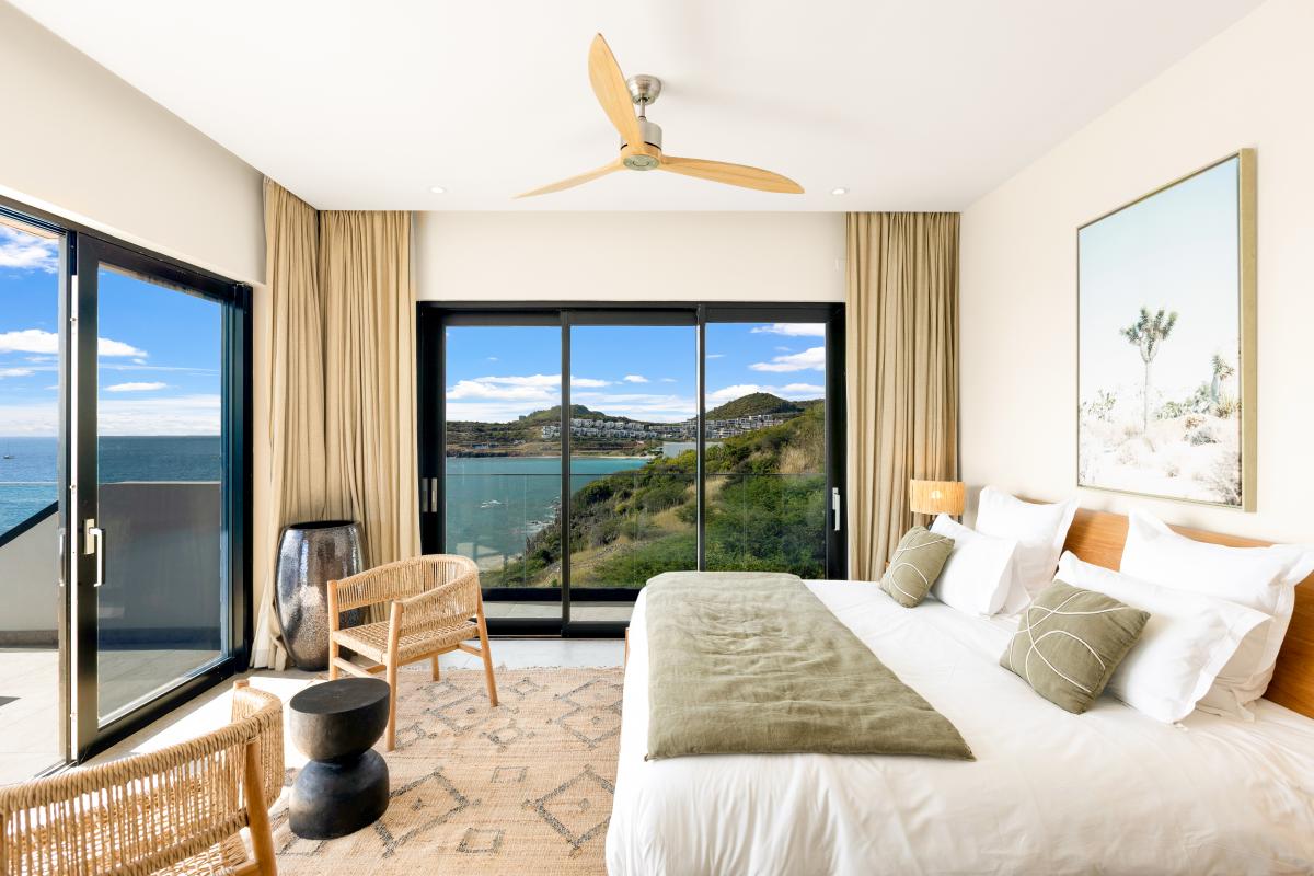 Bedroom 5: King-sized bed, an ocean view, air conditioning, a TV, a safe, and an ensuite bathroom.