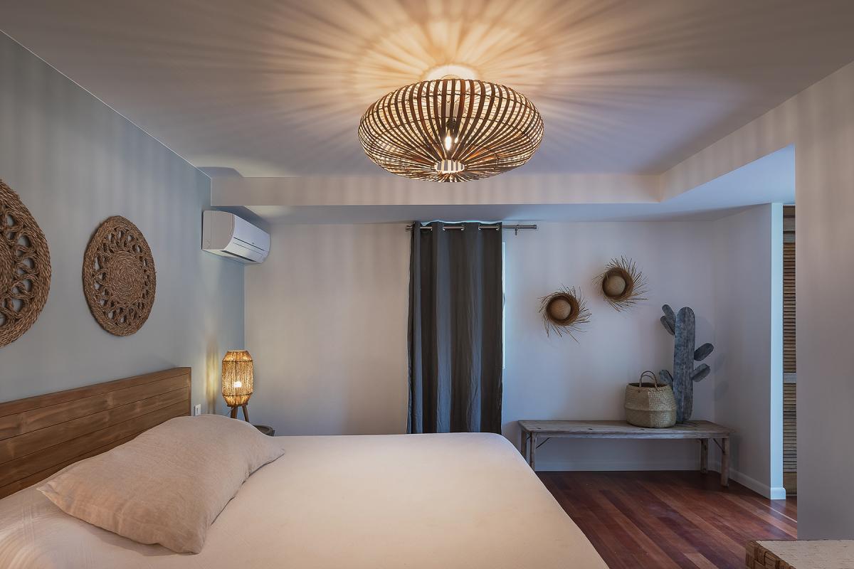 Bedroom 1: This room is equipped with a king-sized bed, an ocean view, air conditioning, and an ensuite bathroom.