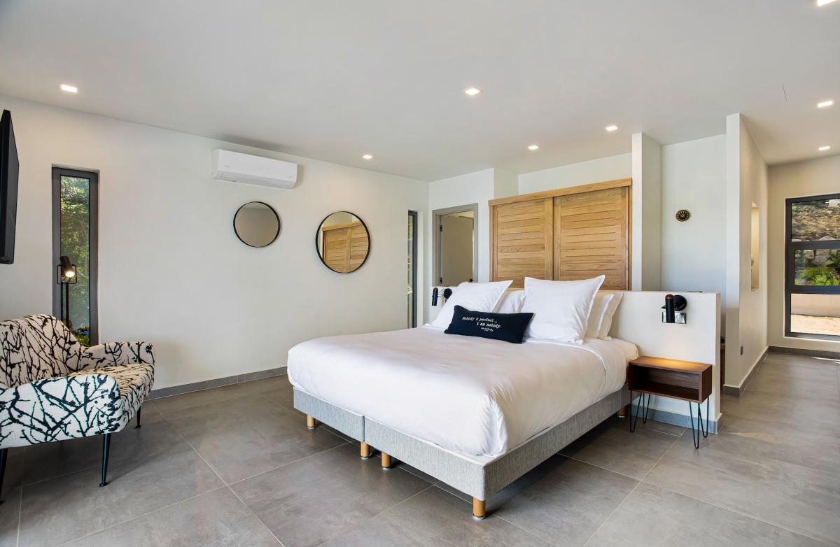 Villa Enjoy, a serene retreat situated by the Grand Etang lagoon in picturesque St. Martin, features two bedrooms and a spacious layout designed for relaxation. This charming home includes a fully equipped kitchen and two bedrooms, each with its own ensuite bathroom featuring outdoor showers. For those who love outdoor living, Villa Enjoy offers an inviting infinity pool, along with a covered lounge area and barbecue for alfresco dining experiences. Moreover, Villa Enjoy is part of a duo with Villa Wellness, providing the option to rent both properties together, accommodating larger groups with a total of seven bedrooms. All within a 6 minute drive to the beach.