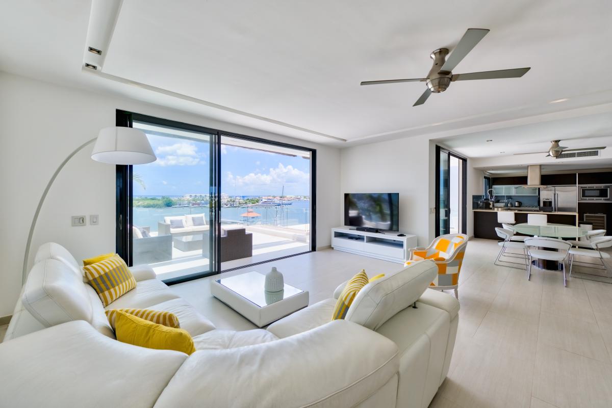 Villa Just Blue is a modern penthouse with a spectacular view of Simpson Bay Lagoon and the Caribbean Sea. Add some sparkle to your view day or night with the moored yachts in the marinas.