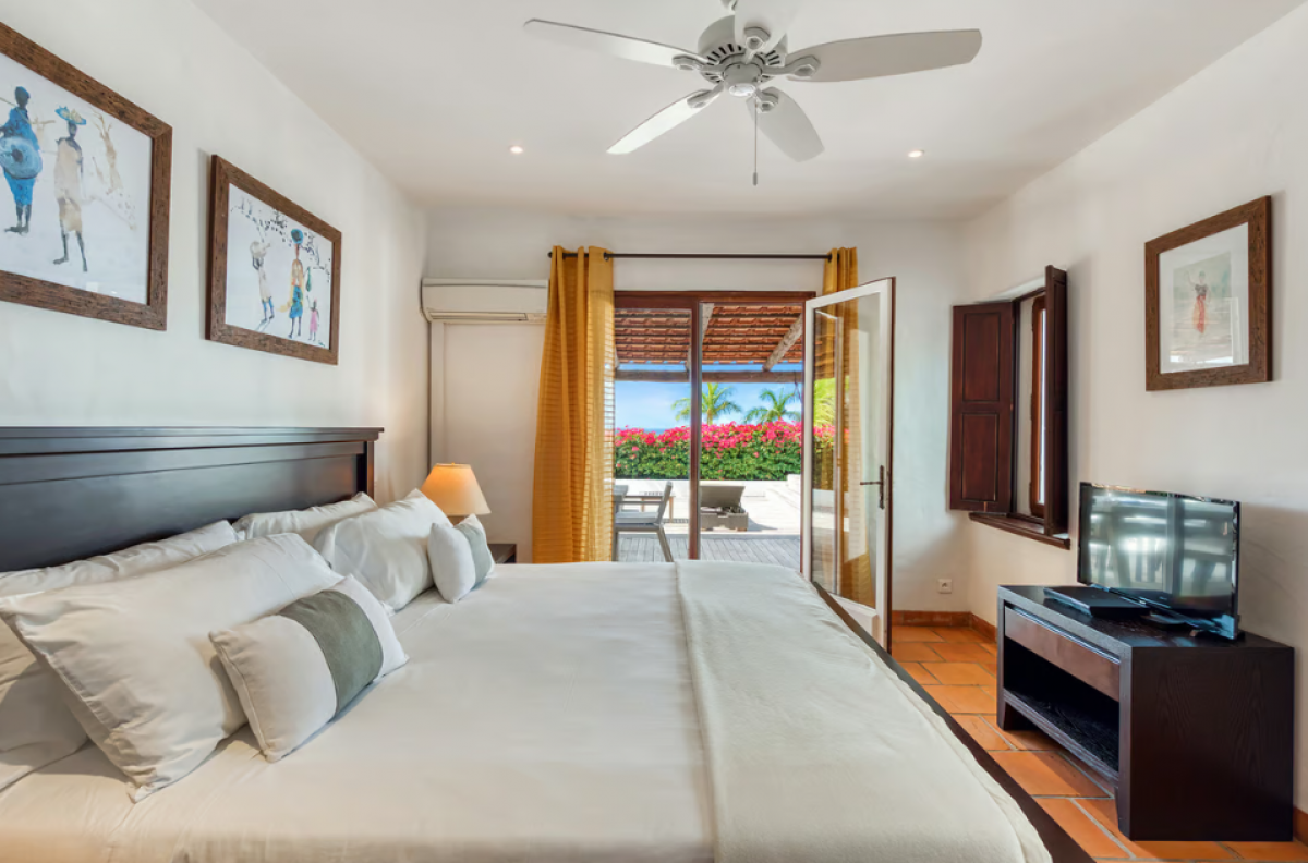 Bedroom 3: Main floor, King bed, connected to main house, AC, TV, safe, shutters, shared terrace, bathroom shared with bedroom 4