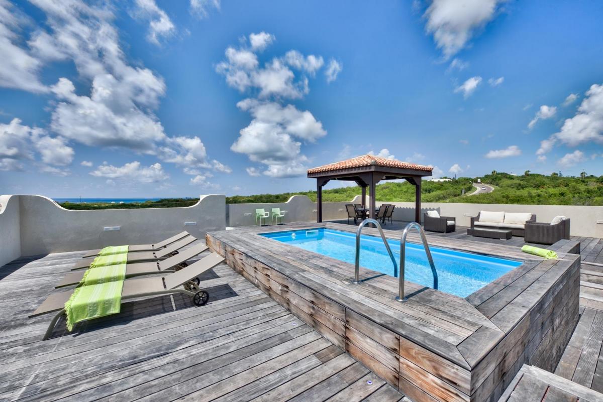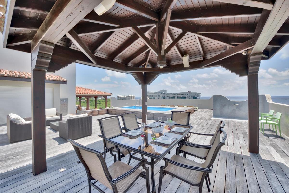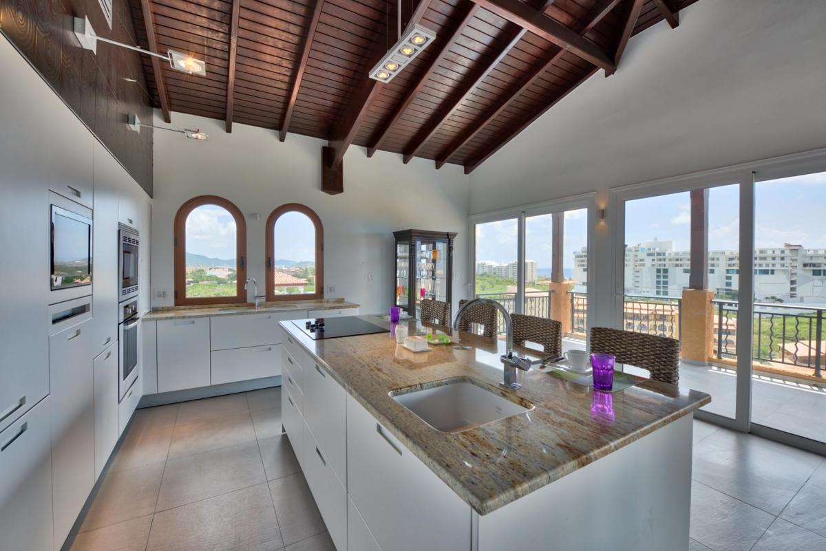 Villa La Perla Sky is an upscale penthouse located in Porto Cupecoy in St. Martin. This St. Martin rental is located on the 10th floor and has three bedrooms, two bedrooms with ensuite bathrooms, and one bedroom with a separate bathroom. Villa La Perla Sky has a beautiful view of the Simpson Bay Lagoon and the Caribbean sea. This penthouse is equipped with a rooftop with a plunge pool, a TV room, and a spacious living area with an American-style kitchen.