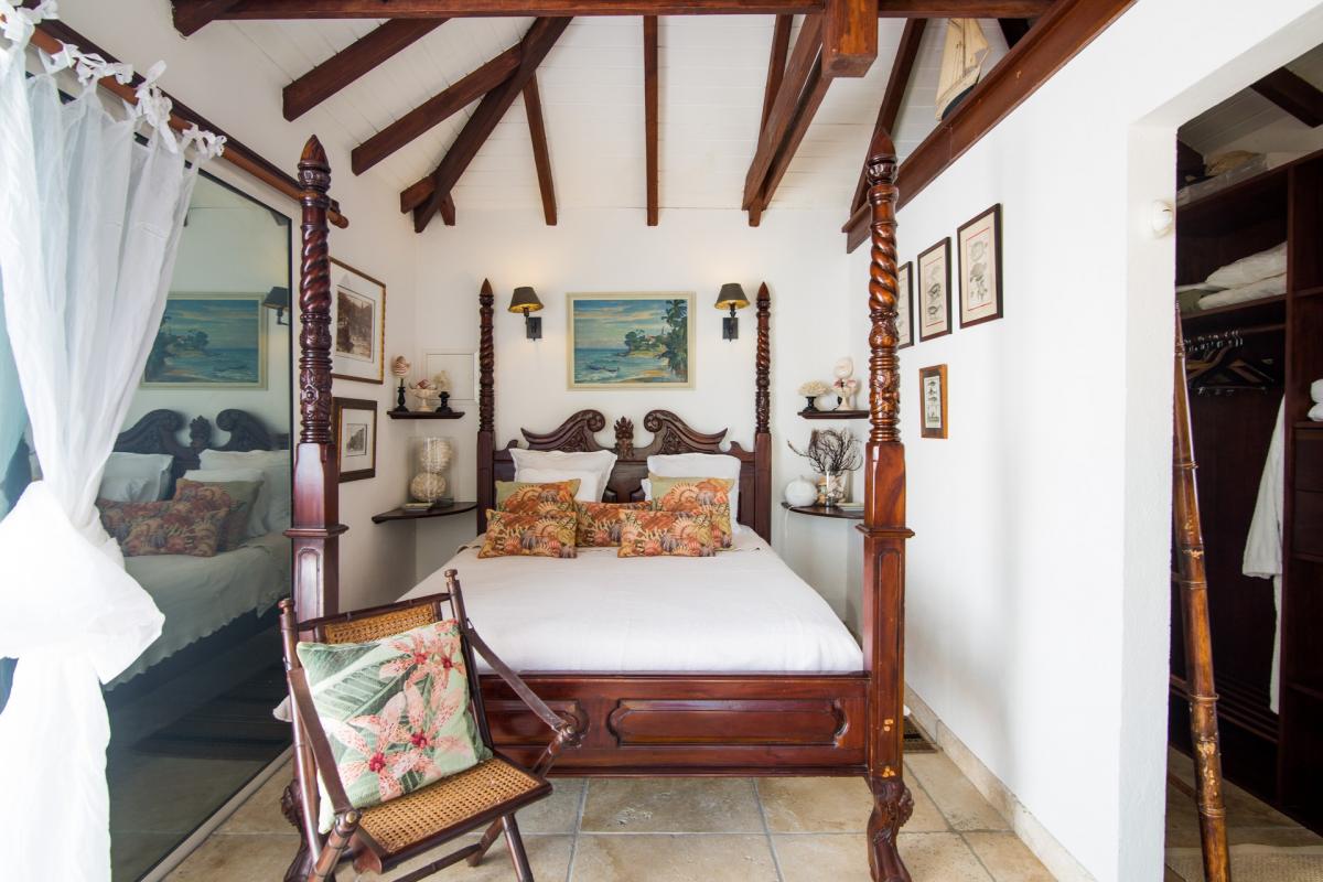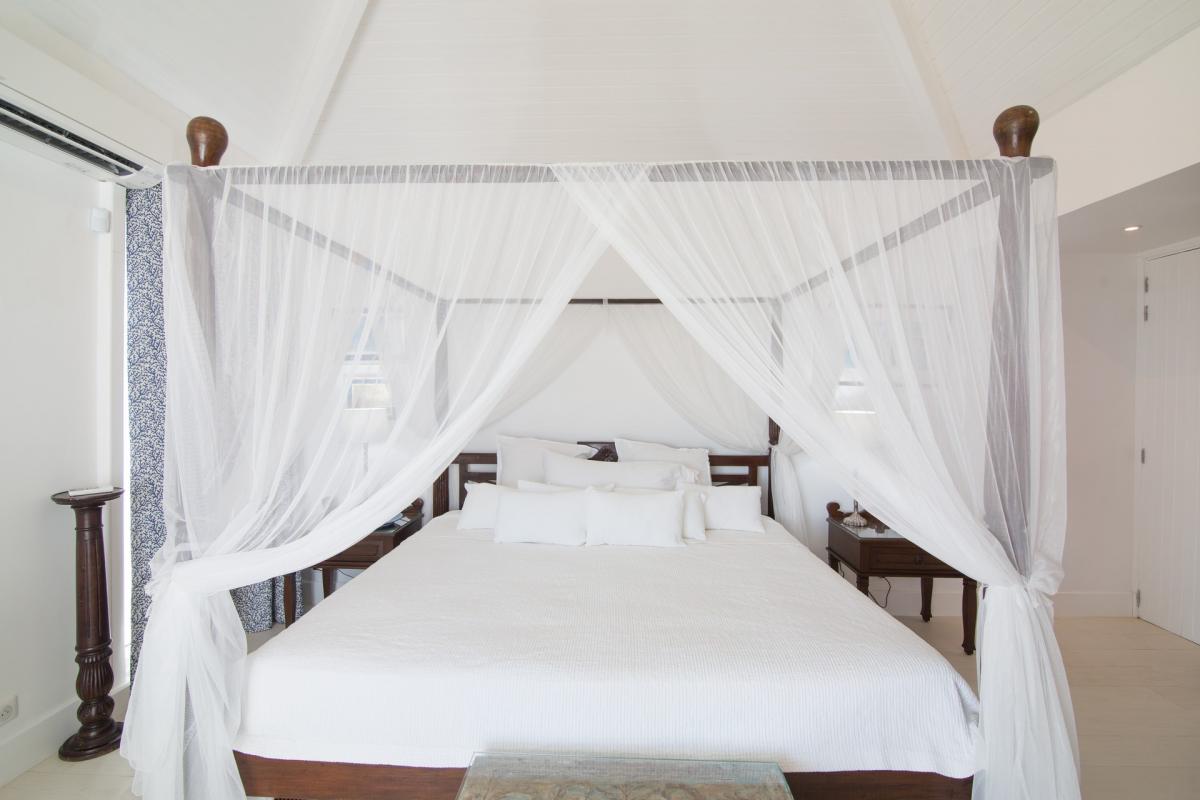 Bedroom 4: This room is equipped with a queen-sized bed, ocean and Orient Bay views, an iPod dock, air conditioning, a TV, a safe, and an ensuite bathroom.
