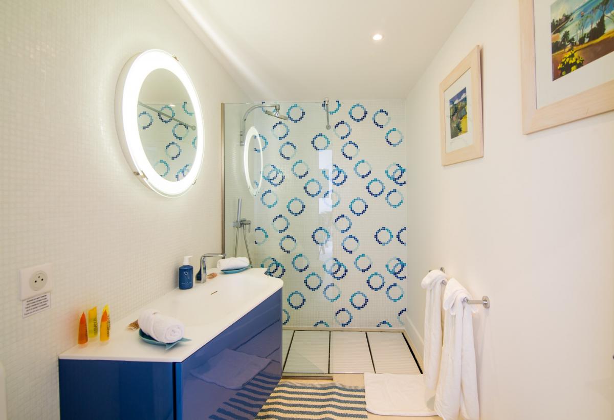 Bedroom 3: This room is equipped with a king-sized bed, ocean and Orient Bay views, an iPod dock, air conditioning, a TV, a safe, and an ensuite bathroom.
