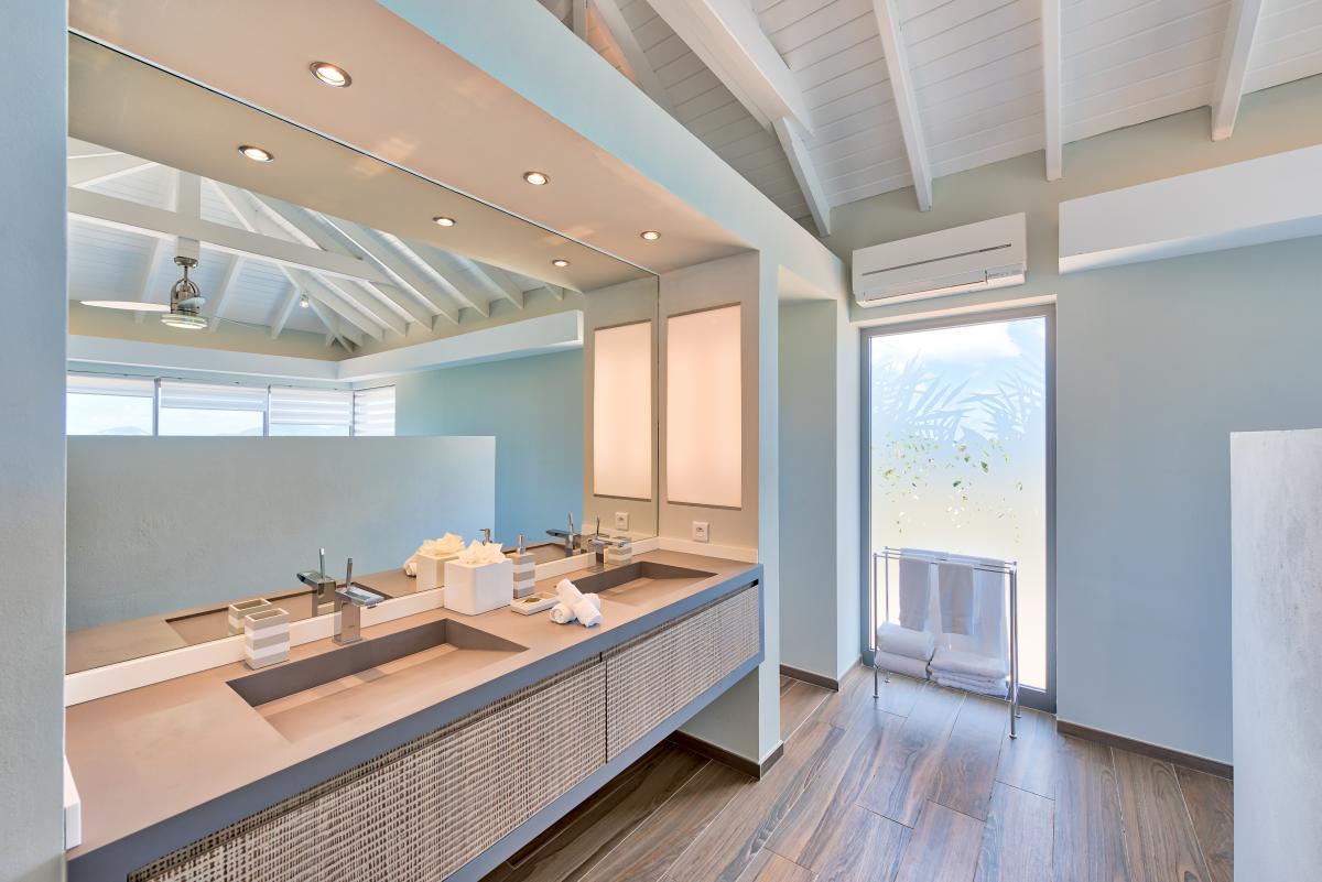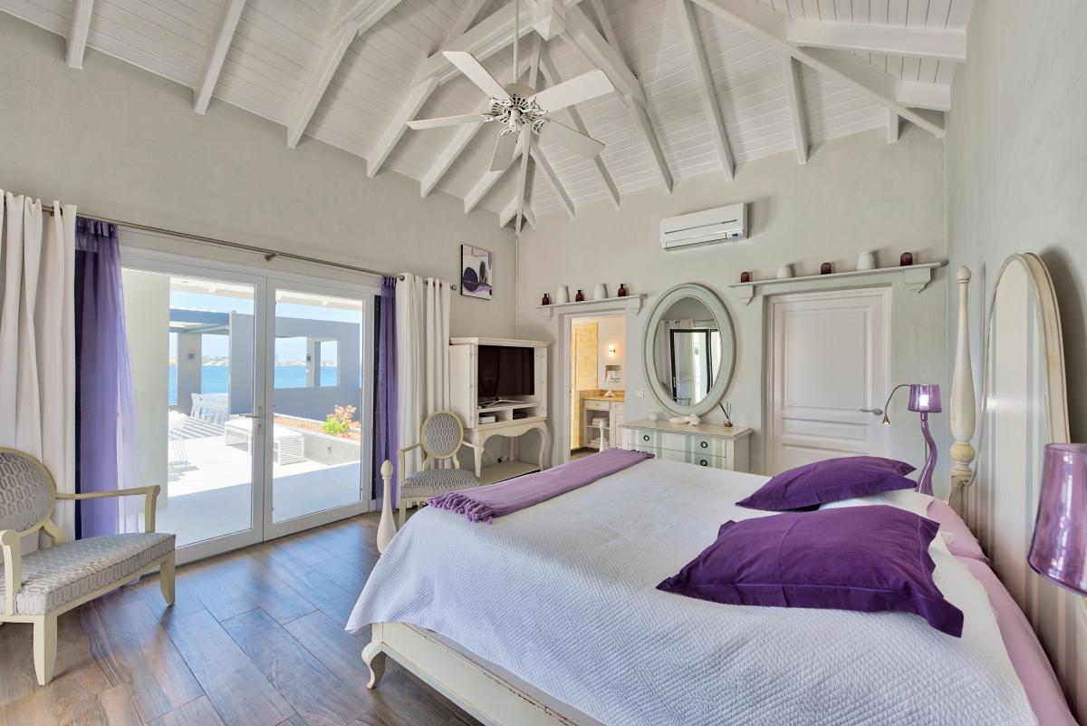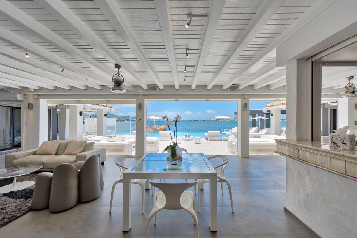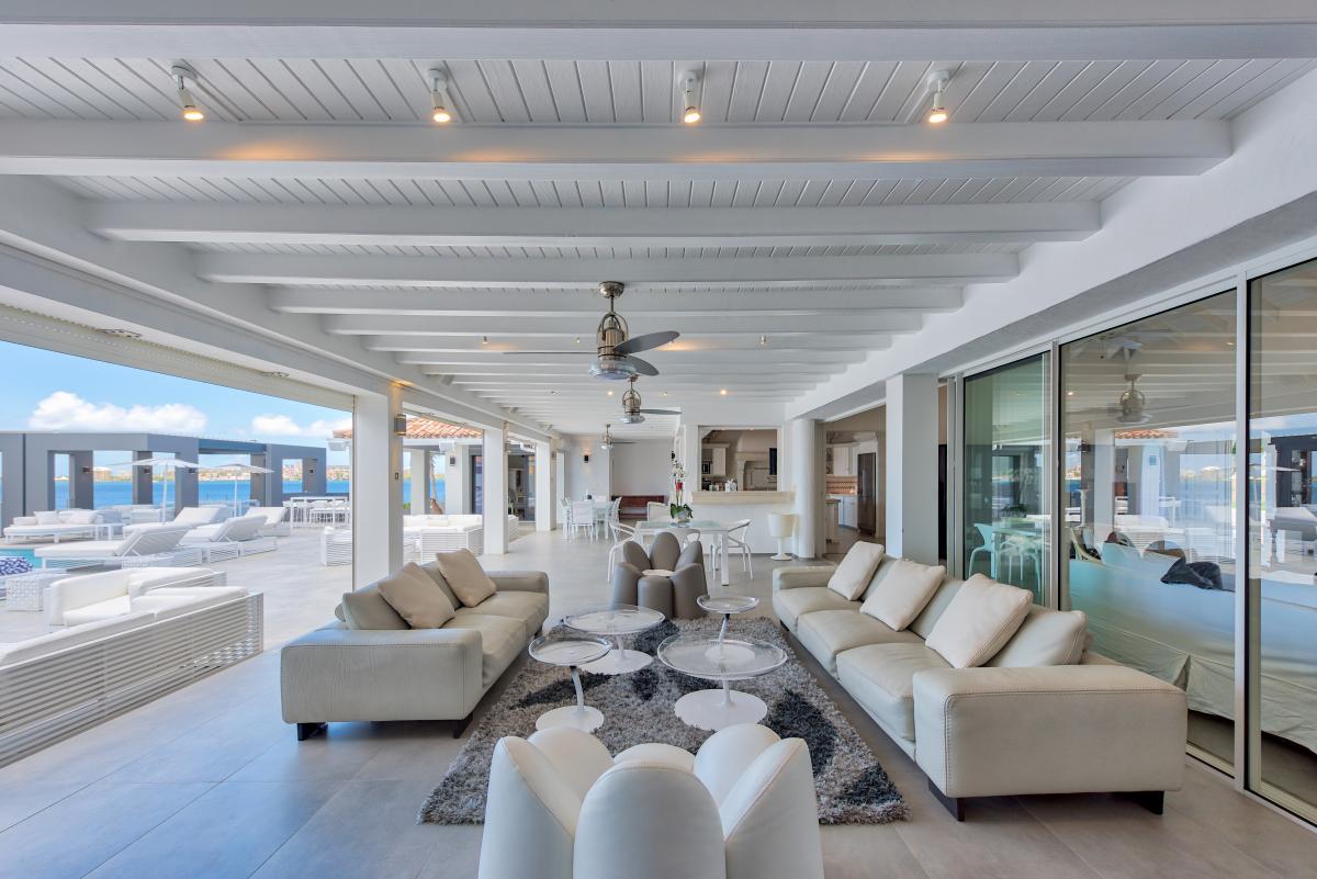 Villa Mirabelle is a gorgeous St. Martin rental located on Simpson Bay lagoon in Terres Basses. This modern St. Martin villa has five bedrooms, all with their own ensuite bathroom. The well equipped kitchen opens onto the terrace and has a view of the lagoon. The covered terrace is equipped with fans, and two aqua bikes are available.