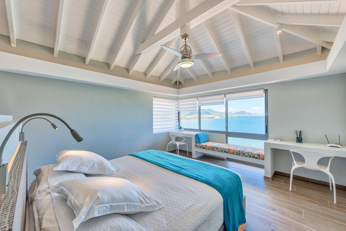 Bedroom 4: This bedroom has a king-sized bed, a fan, air conditioning, a safe, and an ensuite bathroom. This room has a lagoon/ocean view.