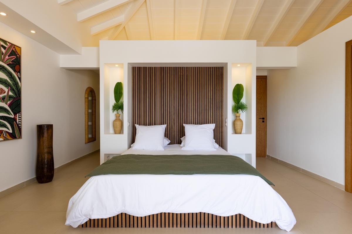 The villa’s five refined bedrooms provide the ultimate sanctuary, with four located on the main level—two offering direct pool access and ocean views, while the other two feature garden views, private terraces, and outdoor showers. The fifth bedroom is a secluded studio with its own entrance, a private living area, a fully equipped kitchen, and an exclusive terrace with a jacuzzi. Whether for a family vacation, a getaway with friends, or a special occasion, Villa Nuit Jade seamlessly blends Caribbean charm with unparalleled luxury, promising an unforgettable St Martin vacation