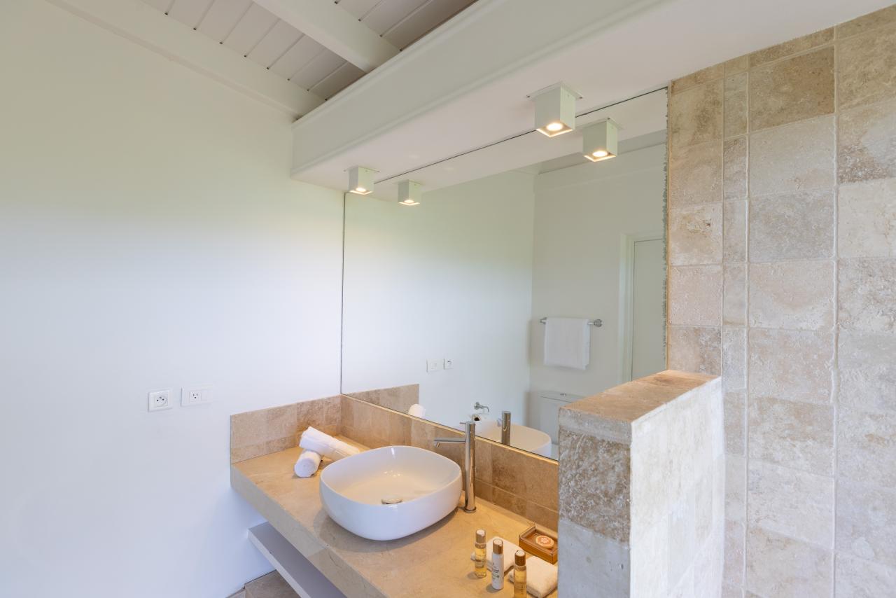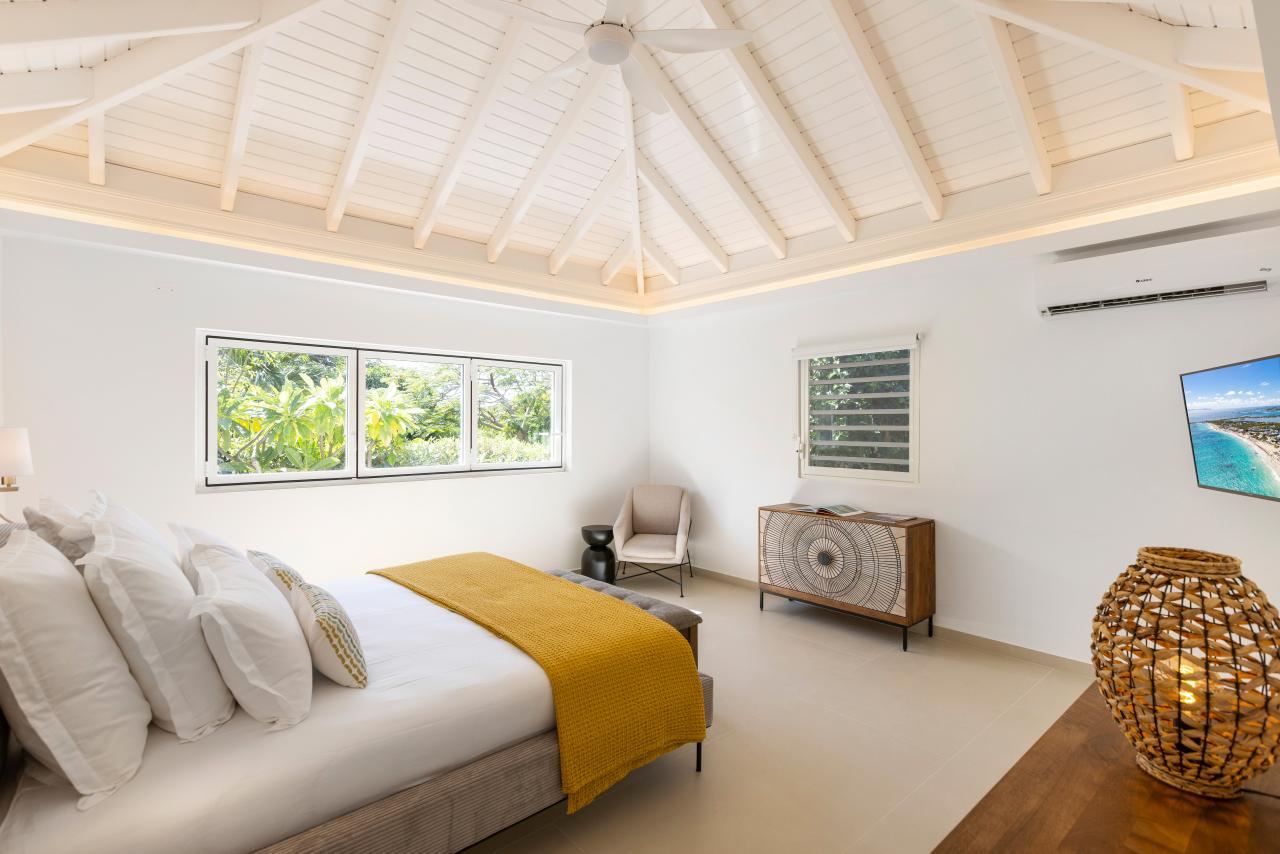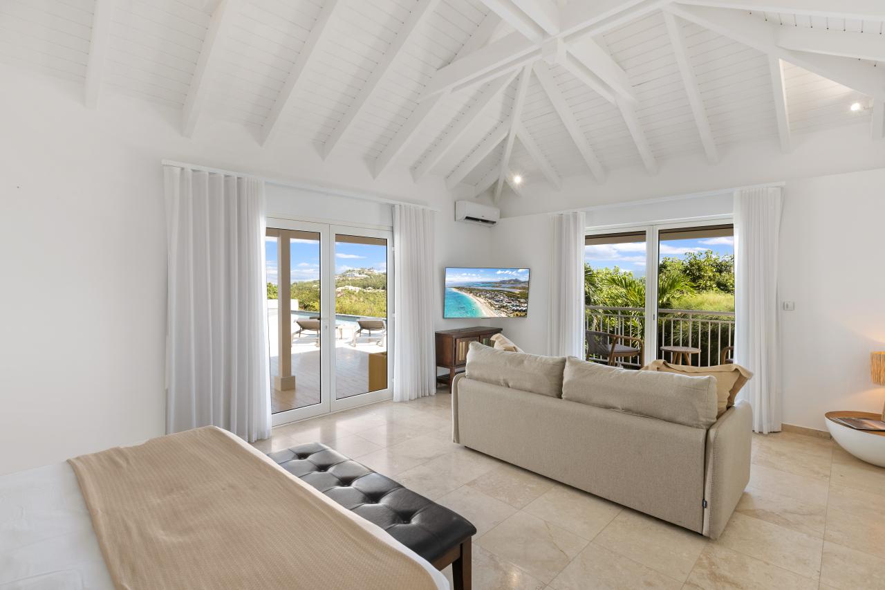 Villa OSun features exquisite Tommy Bahama furnishings, thoughtfully modernized with contemporary décor which Bleu de Perse, a renowned home design specialist, curated. This St Martin villa rental is perched on a scenic hillside, and it boasts breathtaking views from each living area and bedroom. Villa Fields of Ambrosia accommodates up to six guests, it offers two king suites and a twin bedroom, each with a luxurious ensuite bathroom.