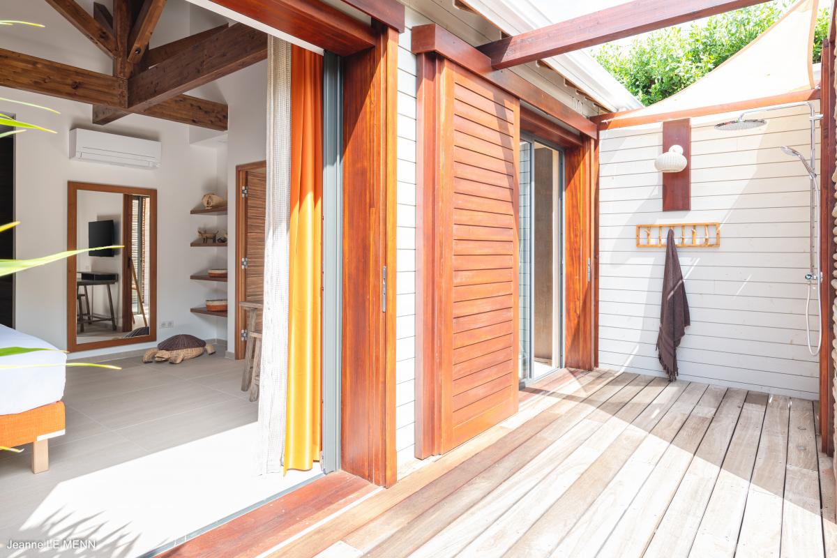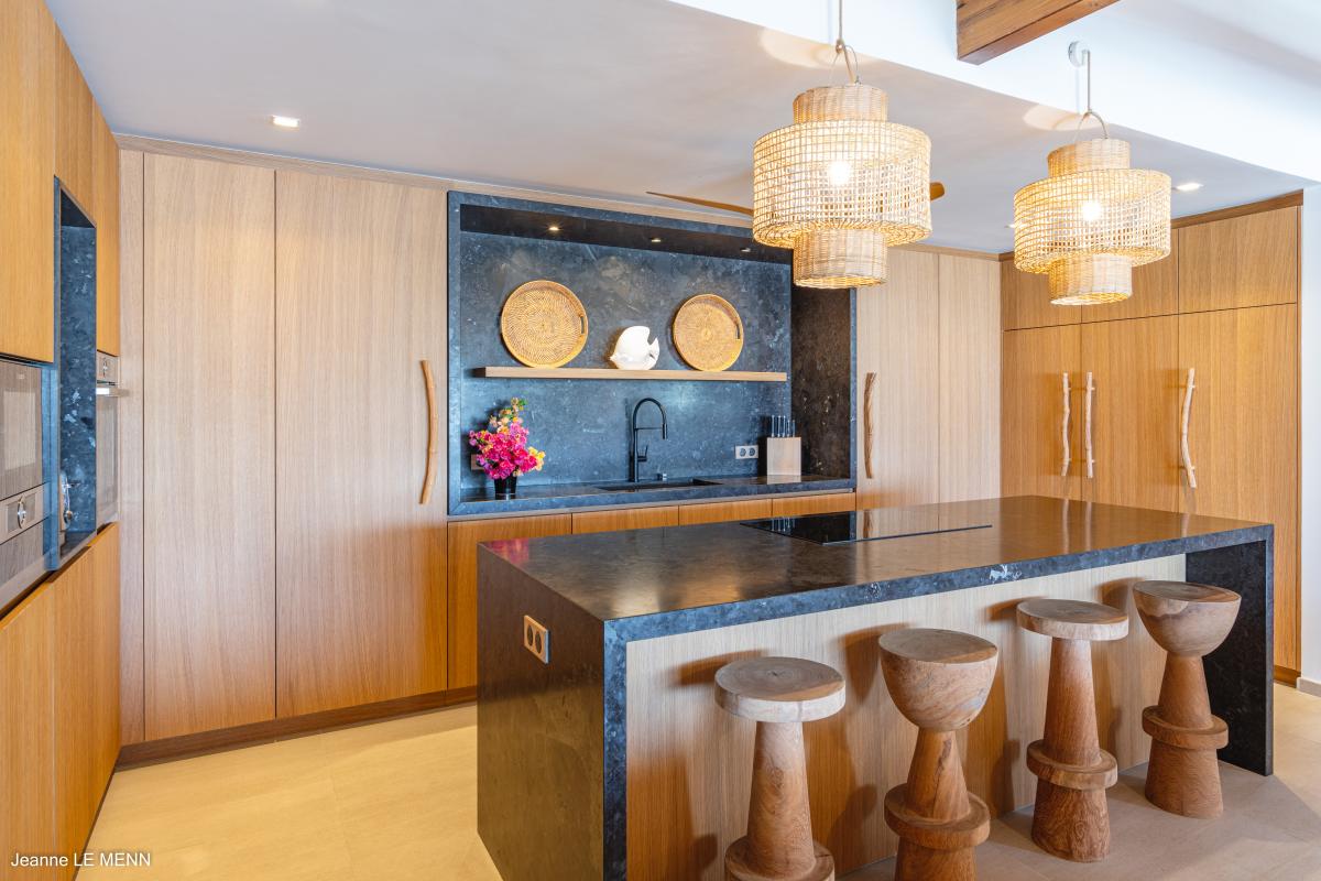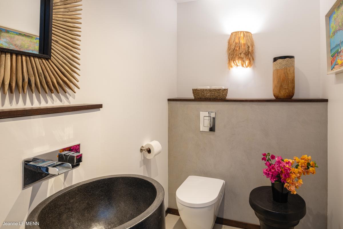 Villa Pom is an oceanfront home located in Cul de Sac in St. Martin. This St. Martin villa has four bedrooms, all with an ensuite bathroom. Villa Pom overlooks Pinel Island and is equipped with contemporary furnishing and a large wooden deck with a pool overlooking the Atlantic Ocean. The interior spaces are tastefully decorated, completely air-conditioned, and fully open to the ocean breeze.