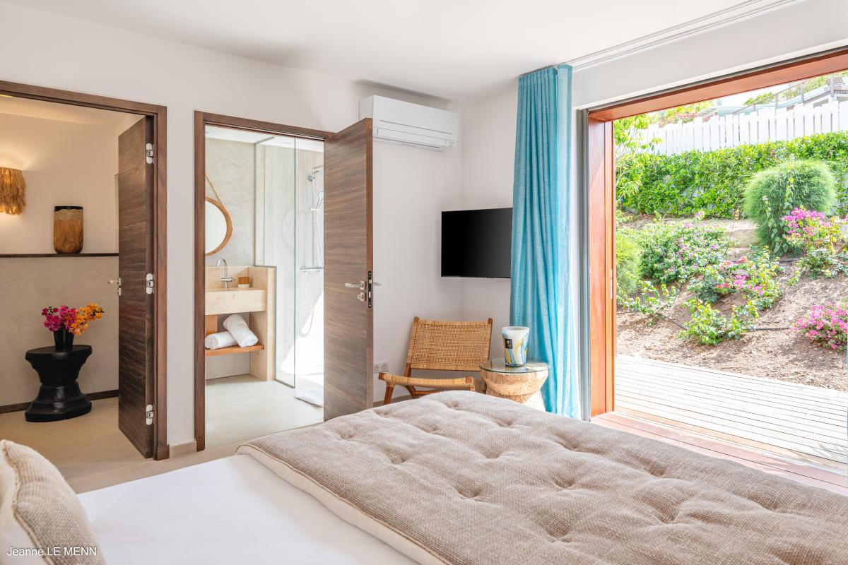 Bedroom 4: This bedroom has a king-sized bed, a fan, air conditioning, a safe, and an ensuite bathroom. This room has a garden view.