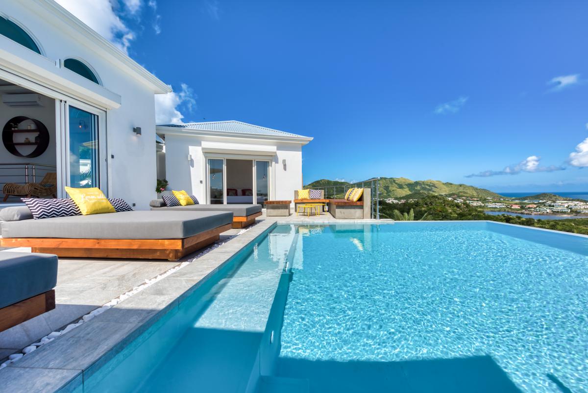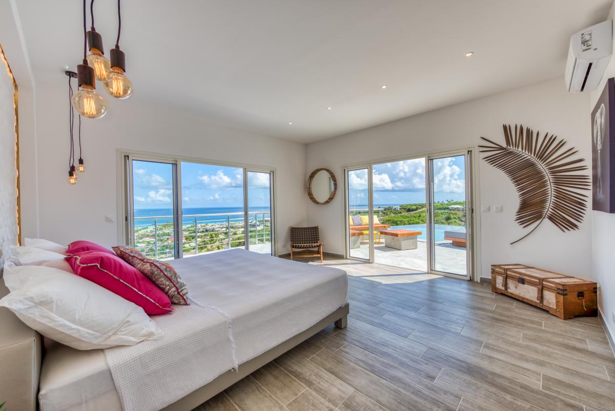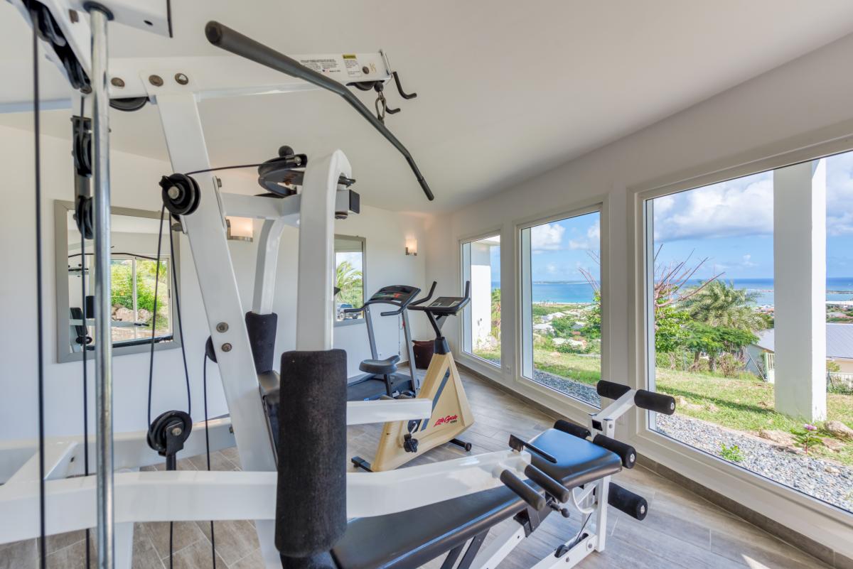 Villa Topaze is a gorgeous home located in Orient Bay in St. Martin. This St. Martin villa has three bedrooms, all with an ensuite bathroom. This villa is equipped with beautiful views of the ocean and the islands of Pinel and Tintamarre. This modern and contemporary property has indoor access to the bedrooms, a well-equipped gym with a view, and a pool.