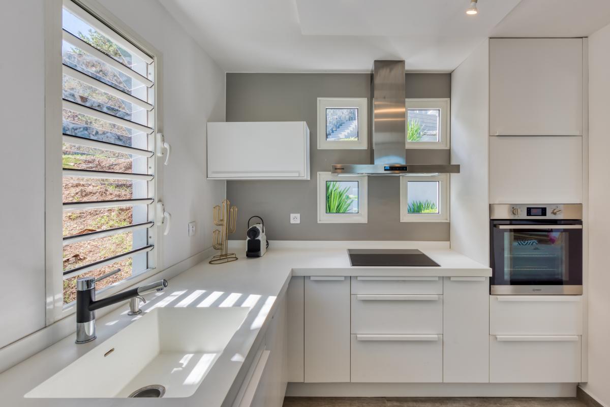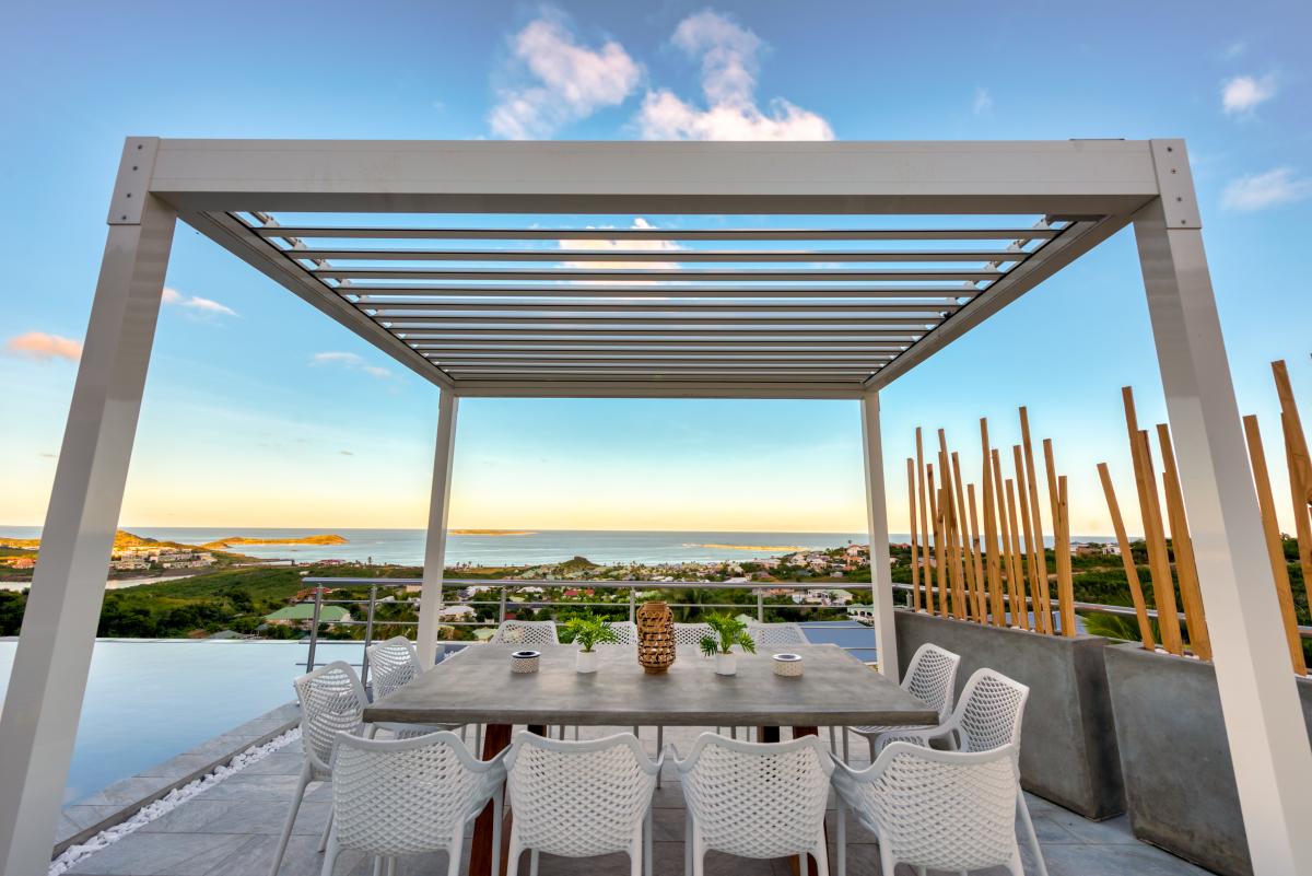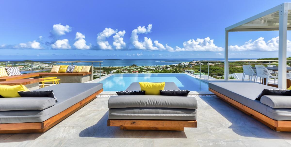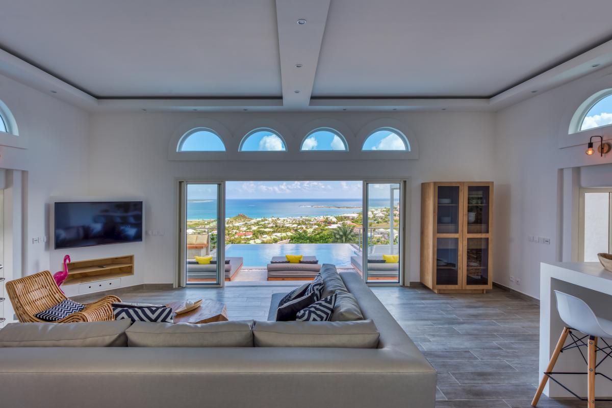 Villa Topaze is a gorgeous home located in Orient Bay in St. Martin. This St. Martin villa has three bedrooms, all with an ensuite bathroom. This villa is equipped with beautiful views of the ocean and the islands of Pinel and Tintamarre. This modern and contemporary property has indoor access to the bedrooms, a well-equipped gym with a view, and a pool.