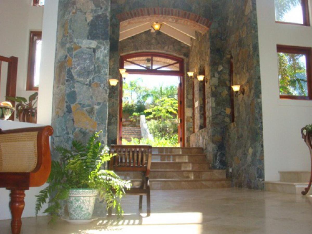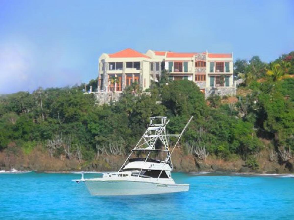 Neltjeberg Bay Villa is located on a pristine site where its exclusive location creates a unique and dramatic Caribbean five bedroom home. It has a beautiful, secluded adjoining white sand beach for private use. Enhanced with native stone, brick, and mahogany mill work, the unique architecture of the Neltjeberg Bay Villa captures the rich heritage of the Caribbean Islands. The grand gallery opens to a heated swimming pool with views of the inner and outer Brass Islands. Each of the luxurious five bedroom suites has its own balcony with spectacular ocean views. The unique location, set at the tip of the bay, allows visitors to witness the calm, still, and lapping of the ocean. When mother nature desires to put on a show, swells come crashing on the volcanic rock below this elevated home with an infinity edge stone pool, surrounded by indigenous cactus, palms, and sea grapes. The concealed beach provides off shore fishing for yellow tail, tarpon, and permit, and abundant opportunities for snorkeling. Relax and enjoy awe inspiring sunsets nestled in the warm, tranquil waters of the North Atlantic Ocean. Your vacation at this StThomas villa rental is the ultimate combination of luxury and security with 24/7 caretakers and security on site. The caretakers are available 24 hours to serve guests. Their cottage is situated on the property, but distant enough to provide privacy for guests. A chef with waitstaff, private driver, and other amenities are available as well. Deep sea fishing or island hopping is also available on the home's 45' Viking Yacht. Travel easily to secluded beaches, main islands, smaller islands, and cays throughout the Caribbean archipelago. Lobster traps have also been set in front of the home's coral reef.