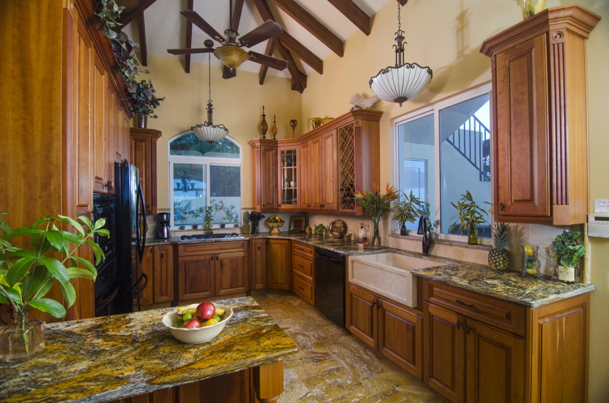 The fabulous down-island view includes 850-acre unspoiled Guana Island, Great Camanoe, The Dogs and Virgin Gorda. On a clear night you can even see the lights of Anegada. The sugar white sands of Josiah’s Bay are off to the right, and Rogues Point to the left. The main floor of the house has a full kitchen with granite countertops, formal dining room, living room with entertainment center, and laundry; go up the stair tower to the office and master bedroom. European craftsmen were flown in to install the Romanian tile that flows through the villa inside and out.