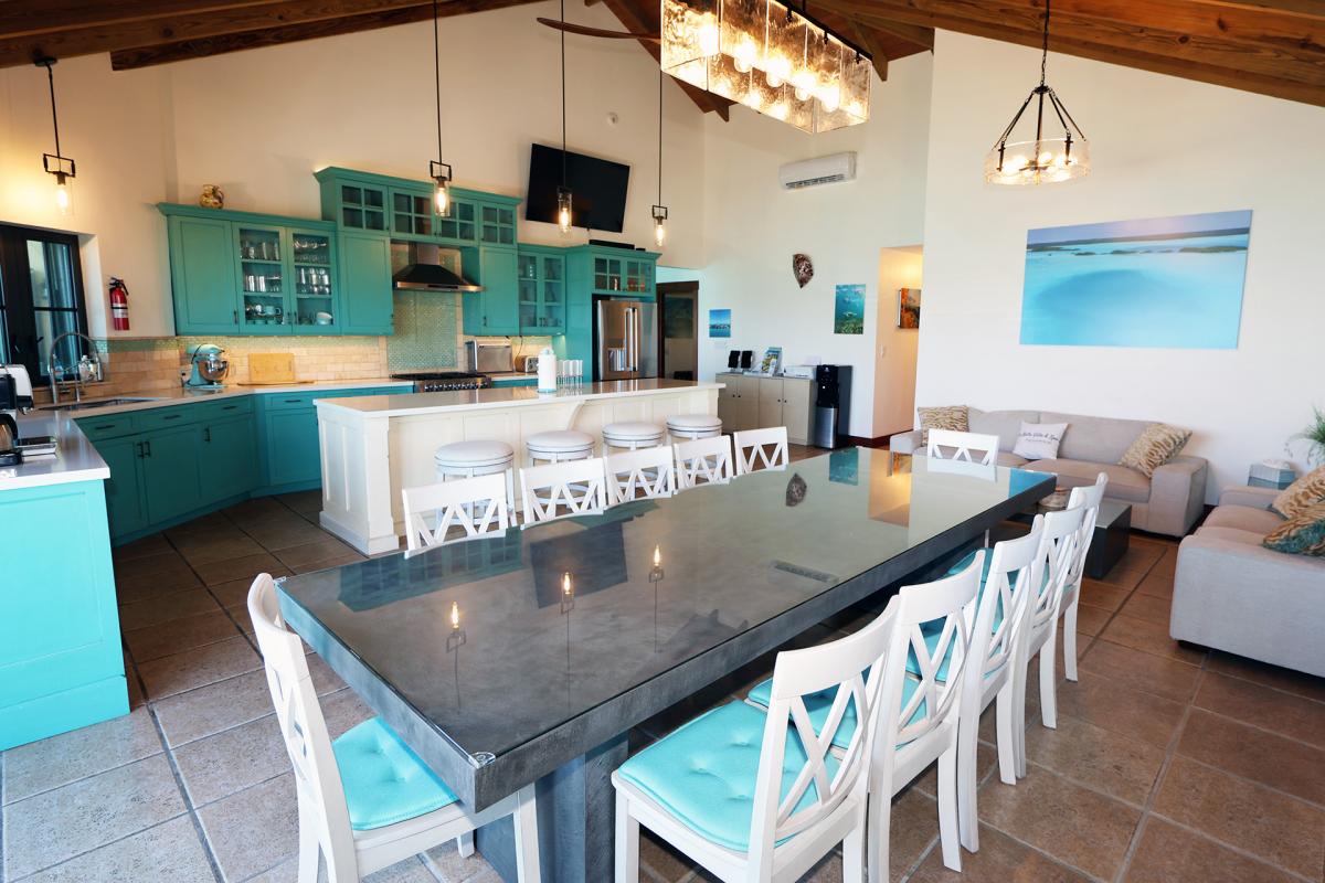 Alta Bella is a resort-style, luxury oceanfront private estate in Turks and Caicos designed for large families and groups of friends, comfortably accommodating up to 20 guests (up to 14 adults). Thoughtfully laid out like a private boutique resort, the property includes a spacious main villa that serves as the central gathering hub along with three separate private-entry casitas, allowing for both connection and privacy—ideal for multi-generational stays. The estate features seven bedrooms in total, including five king suites with private ensuite bathrooms (three with full ocean views and one with a partial ocean view) as well as two additional queen bedrooms. All ten beds are outfitted with luxury foam mattresses, and the villa is fully air-conditioned for year-round comfort.