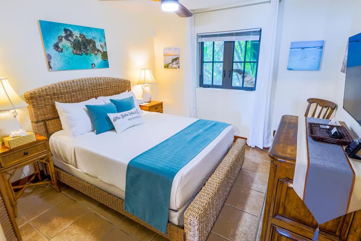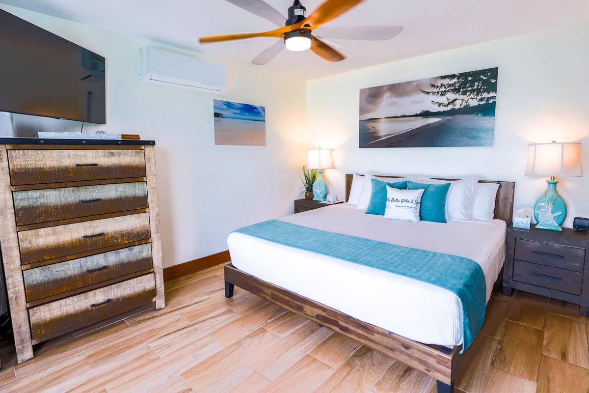 • Upper Casita: King bed + Queen Murphy/Wall bed (a full second bed with a luxury foam mattress), private ensuite + partial ocean view