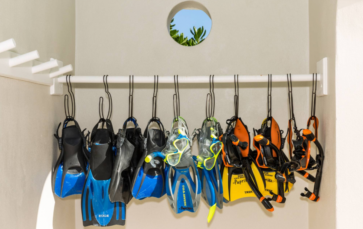 Villa Paprika balances grand social spaces with secluded quiet places to help guests both connect and retreat on vacation. The location serves a wide variety of personal interests. Enjoy the beautiful turquoise waters and sugary beach sand with 3 oceanfront decks with shade umbrellas, sunbathing chaises, tables and chairs. Look for dolphins and sea rays while relaxing on the deck in the early morning! Wooden boardwalks separate the decks supporting secluded areas for meditation, private conversations, and reading. Smith’s Reef is literally steps off shore directly in front of the villa. It is voted “the island’s best snorkeling reef close to shore”. Explore an ocean playground with hundreds of fish species, or relax in the villa’s large 35’ x 15’ saltwater heated pool. The coral stone pool terrace is surrounded by beautiful flowers, coconut palms, sunbathing chaises, and a shade gazebo. There’s a shallow kiddie pool for young children and a “Pottery Barn Kids” play kitchen on the 3rd floor. Beach walkers love Grace Bay Beach for tranquil miles of perfect sand and pristine turquoise waters. Villa Paprika’s beach has ample soft, sugary sand. Water shoes are recommended for the narrow strip of rocks close to shore which may be slippery when wet. Adventure seekers find many ocean excursion boats close by with an easy walk to Turtle Cove Marina.
