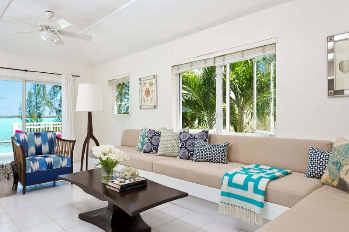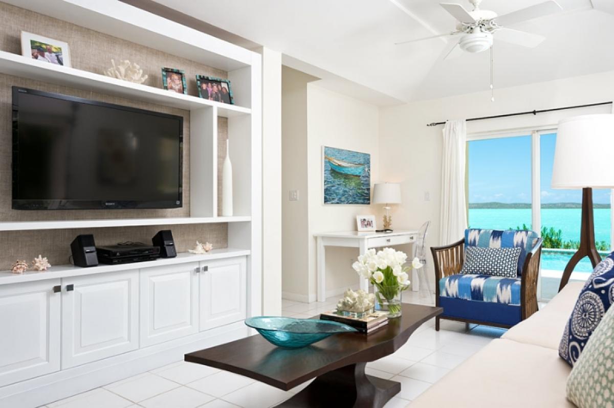 The stunning pool is sunk into the sundeck in front of the main villa and between the two cottages. The sundeck is perfect for catching the cooling trade wind breezes while tanning on loungers or dining al fresco. The white sands of Taylor Bay Beach are also available across the street on the ocean side, a short stroll away from this lovely Turks and Caicos villa rental!