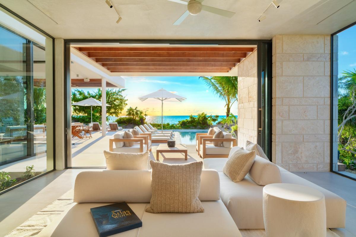 This Turks and Caicos rental offers eight bedrooms with ensuite bathrooms and an additional bathroom and a half. There are also ample amounts of indoor and outdoor spaces around Dune House for guests to lounge or dine to experience new scenery during their stay.