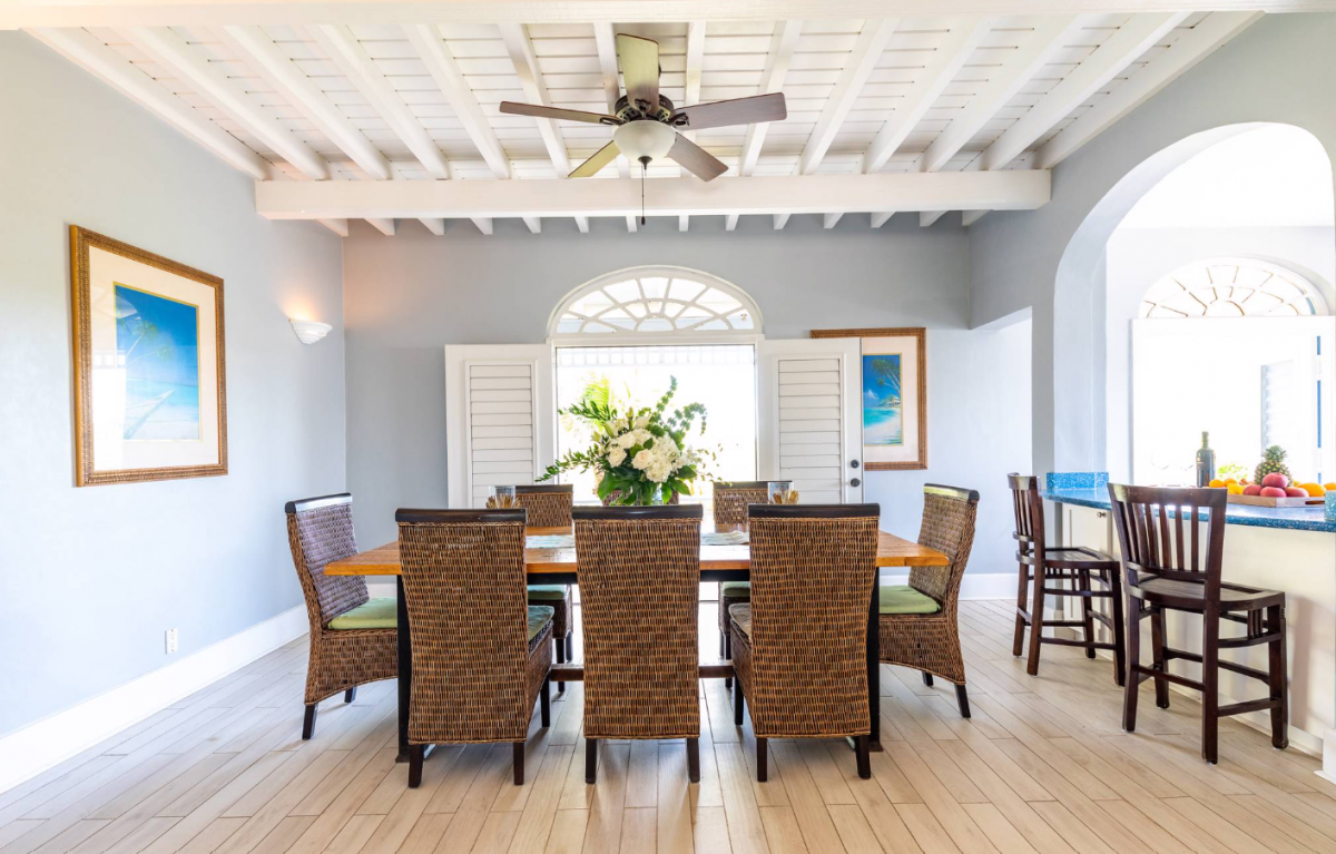 Etoile de Mer is surrounded by palm trees on an acre of land on Sunset Bay one of the islands prettiest beaches and known for its privacy. Custom designed to catch the leeward breezes which gently waft through the house, Etoile de Mer feels more like a lovely home, not a rental. Divide your time between the beach, just steps away, and the large fresh water pool, gazebo and deck at Etoile. The gentle tides of Sunset Bay offer on opportunity to wade, swim, snorkel or kayak. The fine white sands bid you to take long walks or sit and watch the sunset.