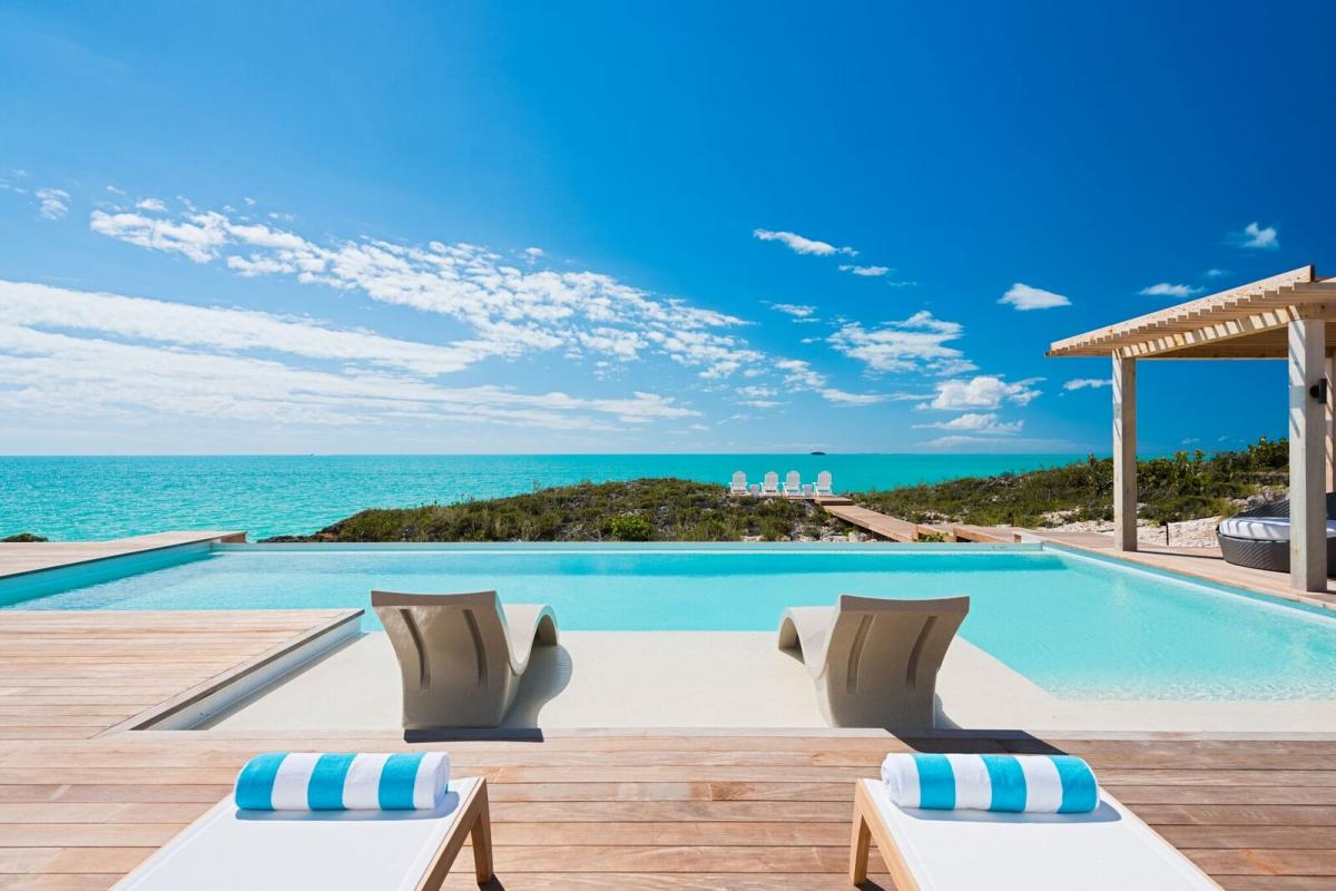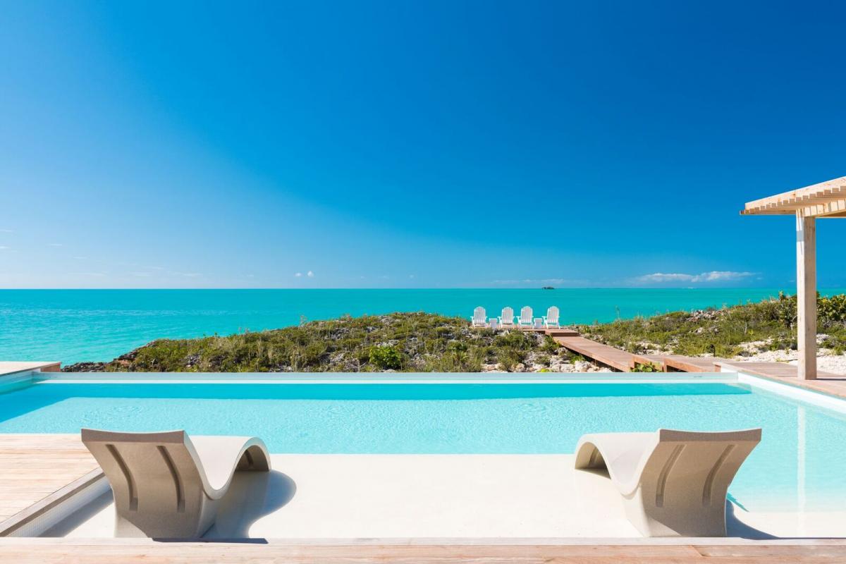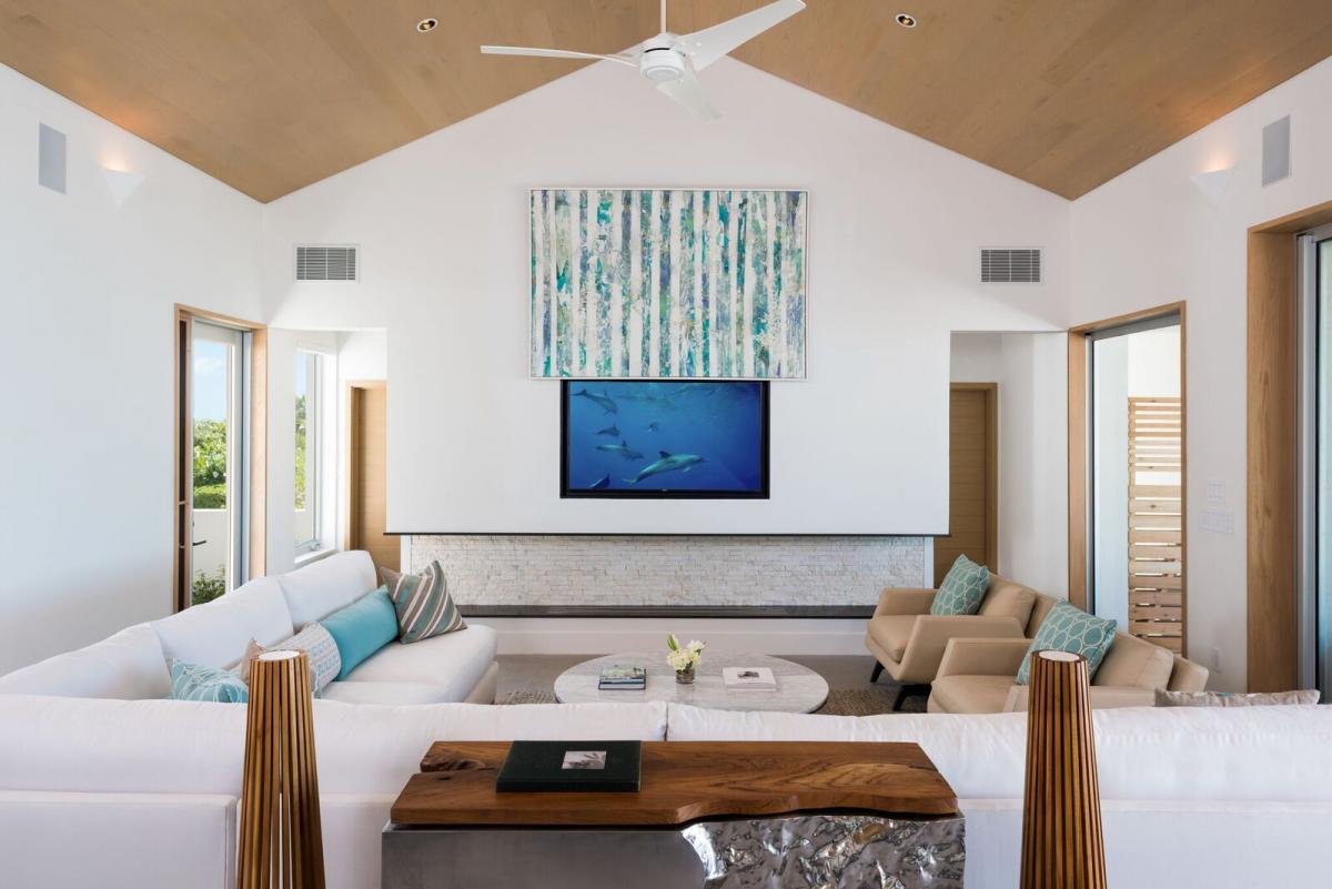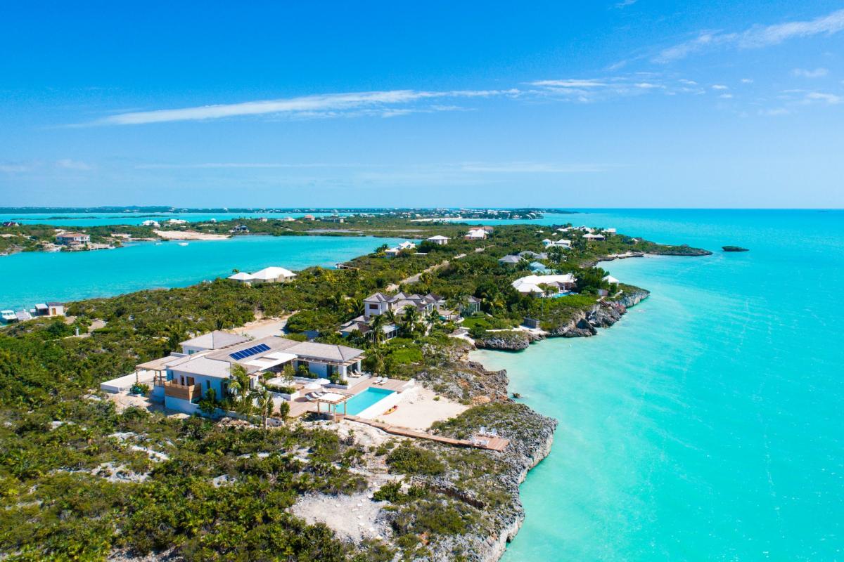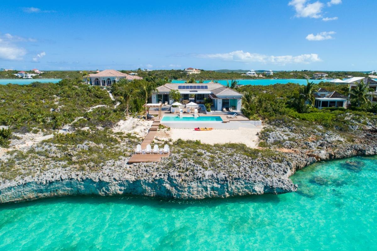 Hesperides House is a brand new five-bedroom luxury waterfront accommodation in the Turks and Caicos Islands. Named for the mythical garden at the edge of the western world of ancient Greek lore, and the three nymphs of the golden light of sunset who tend to it, Hesperides House is a stunning contemporary residence that lives up to its namesake. Located on the sunny southwestern shore of Provo in exclusive Silly Creek Estates, the home is situated in a private gated community on the edge of Chalk Sound National Park, where it faces sweeping Caribbean sea views across the Caicos Bank to West Harbour Point and the unspoiled shoreline of Frenchman’s Creek Nature Preserve.