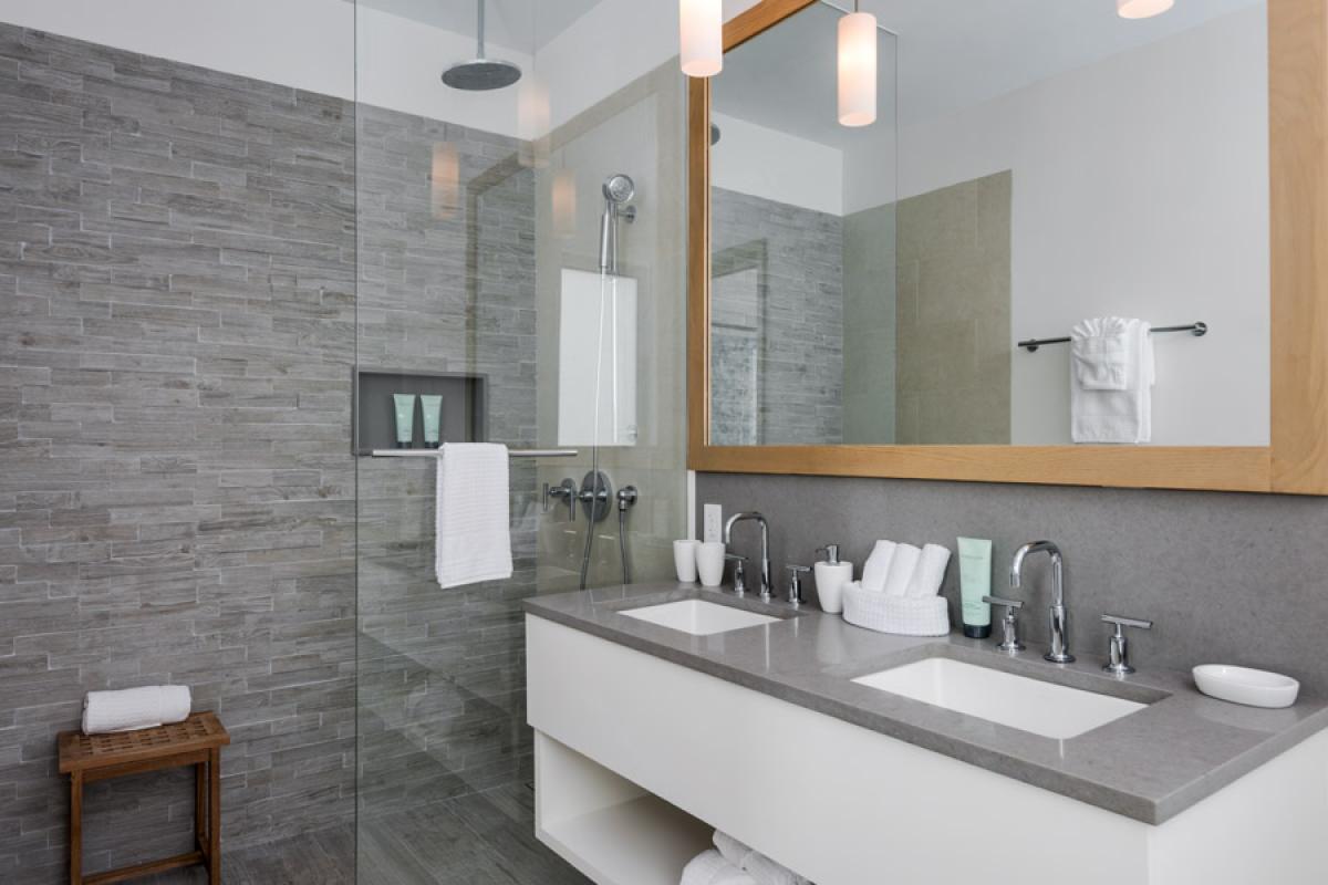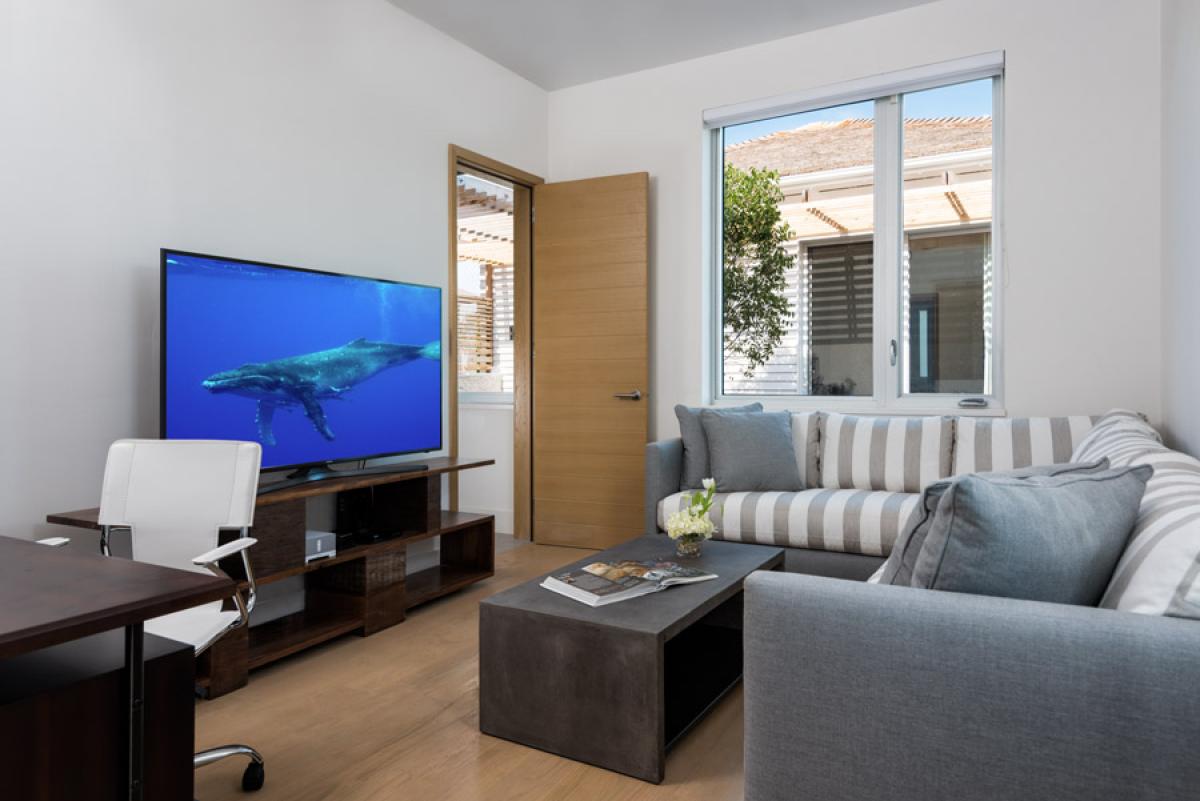 The home was designed by acclaimed Coast Architects and carefully laid out to take maximum advantage of its incredible setting, with 4000 feet of interior space and another 4000+ feet of decks and terraces, for over 8000 feet of combined living space. It blends modern simplicity of structure and open floor plan living with incredible attention to materials and details. Built in three distinct pods for both privacy and community, it includes a large living and dining room with vaulted ceiling, a contemporary kitchen with gourmet appliances, five bedrooms, all en suite and including a master with an outdoor tub and shower, multiple decks and terraces, and a library with 65” TV, Sonos and home theater system. Beautiful gardens and lush tropical plants surround the house, giving it a tranquil tropical feel and providing privacy and seclusion.