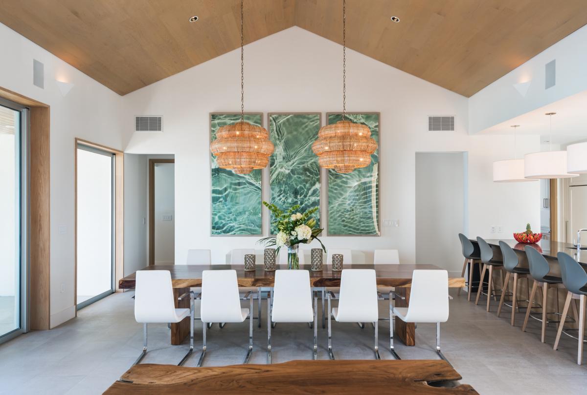 Hesperides House offers everything you need for a perfect and indulgent getaway. Swim in the infinity-edged pool while gazing across the mesmerizing cobalt of the Caicos Bank, relax in the waterfront gazebo caressed by the ocean breezes, or cozy up around the sunken fire pit to enjoy the perfectly framed sunset before dining al fresco on the outdoor terrace. A few steps from the patio and pool deck take you down into the gin-clear, sandy-bottomed water of the bank, where swimming, snorkeling, and kayaking await. Behind the home there is a wading beach on Silly Creek, where the protected and shallow waters are perfect for young children. The home’s location on the edge of the national park provides miles of shoreline and deserted beaches to explore by kayak or paddleboard. If that’s not enough to keep you content, beautiful Taylor Bay and Sapodilla Bay beaches are just down the road, and great dining is a few minutes away at Las Brisas and Bugaloo’s.