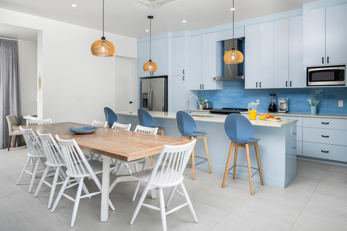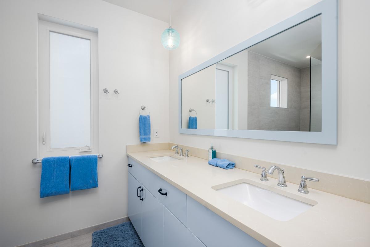 The Hura Sea Villas are two luxury Turks and Caicos rentals located in Long Bay. This rental is comprised of Hura Sea Azure, four bedrooms, and Hura Sea Turquoise, two bedrooms. These Turks and Caicos villas are minimal and boast a light, airy design style.