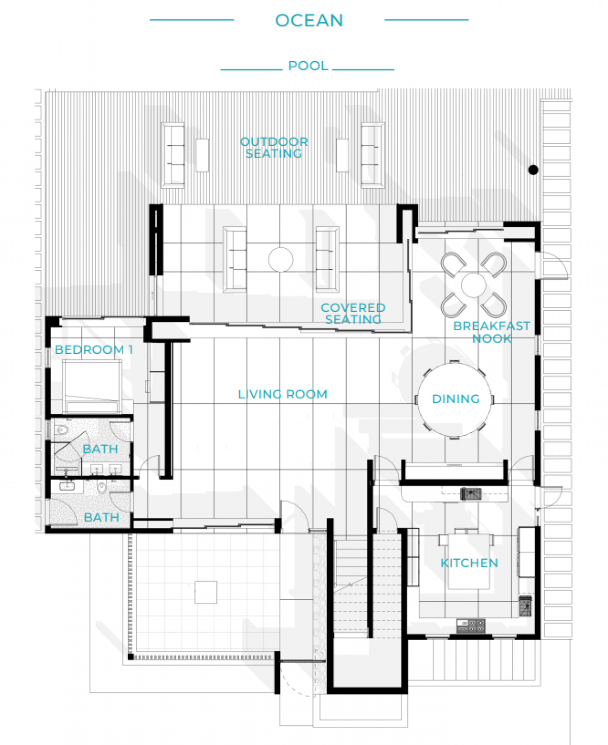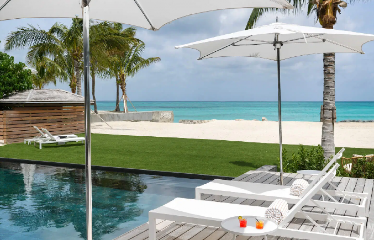 Marahuyo, a 6-bedroom villa, is a stunning outdoor paradise that offers a luxurious and relaxing experience for its guests. The black lava stone pool adds a touch of elegance and uniqueness to the setting. The poolside amenities such as pool ledge loungers, sun beds, and cocoon chairs create a comfortable and inviting space for guests to unwind while enjoying the beautiful white sands and turquoise ocean views. The inclusion of kayaks, snorkel gear, and a pickleball court offers a variety of recreational activities for guests who enjoy both water and land-based sports. This adds to the overall appeal of Marahuyo, catering to different interests and preferences. In addition, the sunken firepit with ocean views provides a perfect spot for guests to gather in the evenings. The ambiance of the firepit creates a warm and inviting atmosphere, making it an ideal space to relax and rejuvenate from the day's activities. The combination of the outdoor amenities, scenic views, and evening relaxation options makes Marahuyo a truly memorable destination for those seeking a luxurious and immersive getaway.