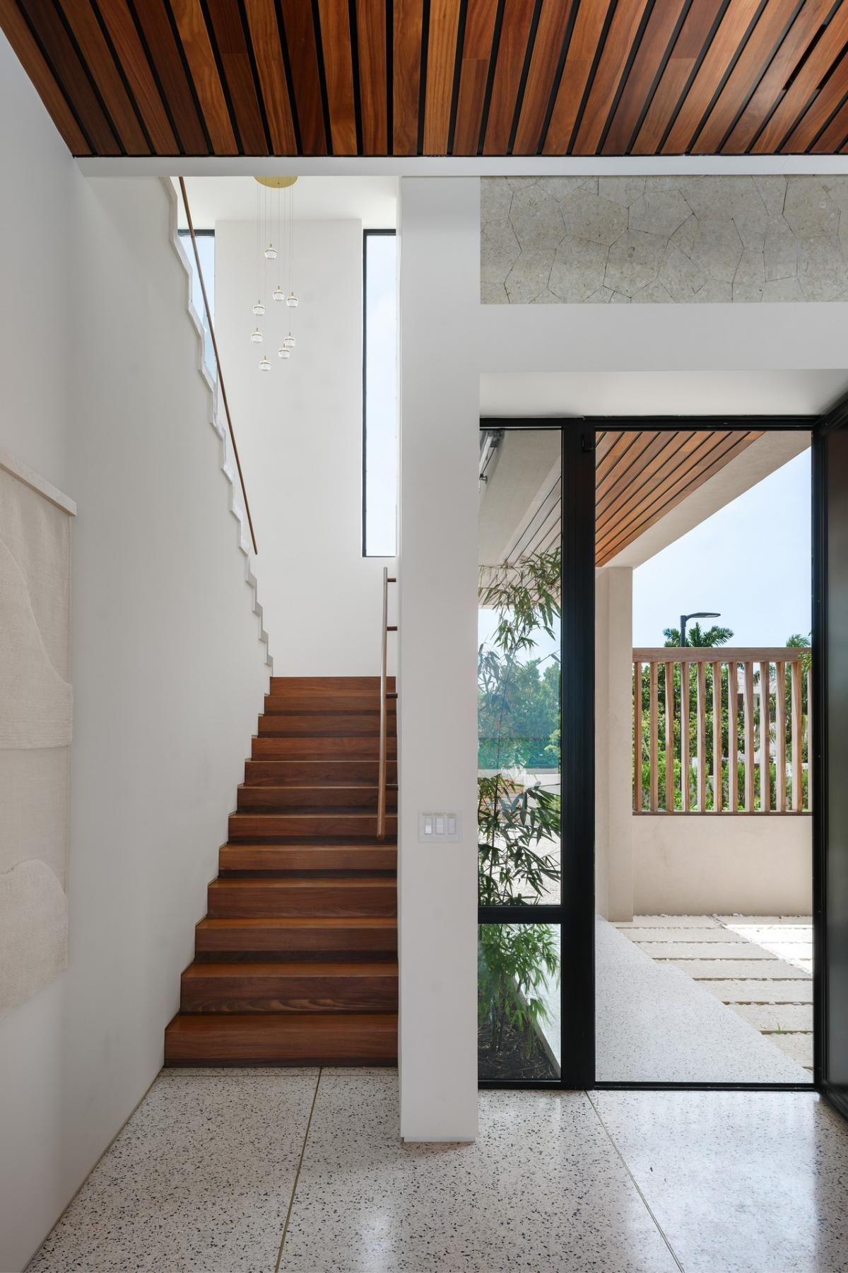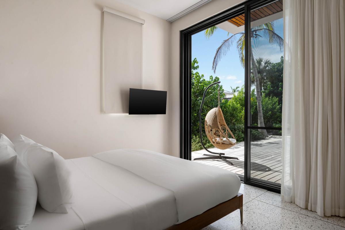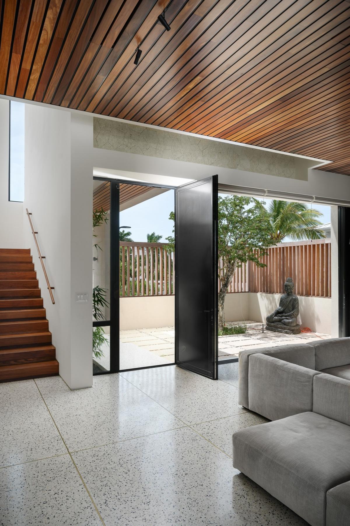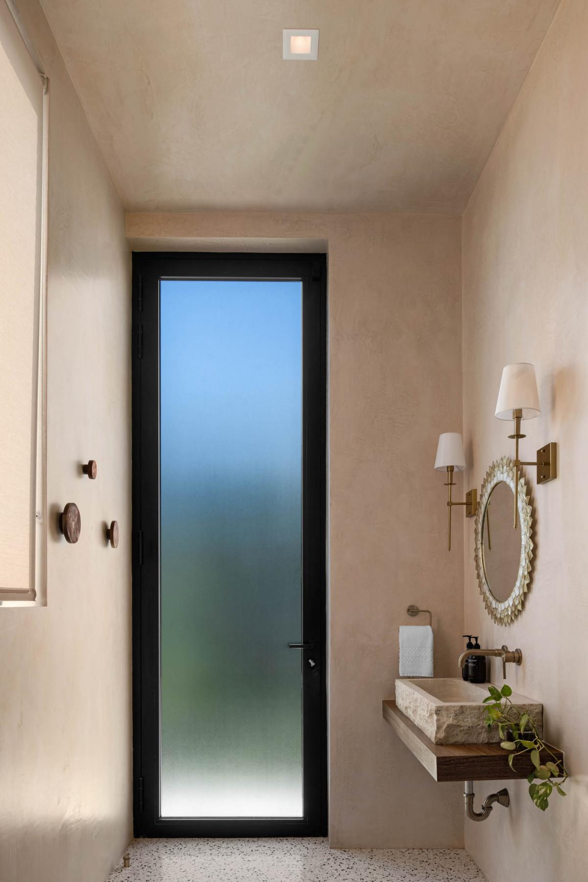 Marahuyo offers a seamless blend of modern and organic design elements, providing a sophisticated and comfortable atmosphere for its guests. The timber-clad ceilings and terrazzo floors contribute to the organic and contemporary feel of the interior, creating a harmonious living space. The fully pocketing doors in the living area are a wonderful touch, allowing guests to enjoy the surrounding outdoor beauty and creating an open and airy environment. This design choice enhances the overall experience, bringing the outdoors in and connecting the living space with the natural surroundings.